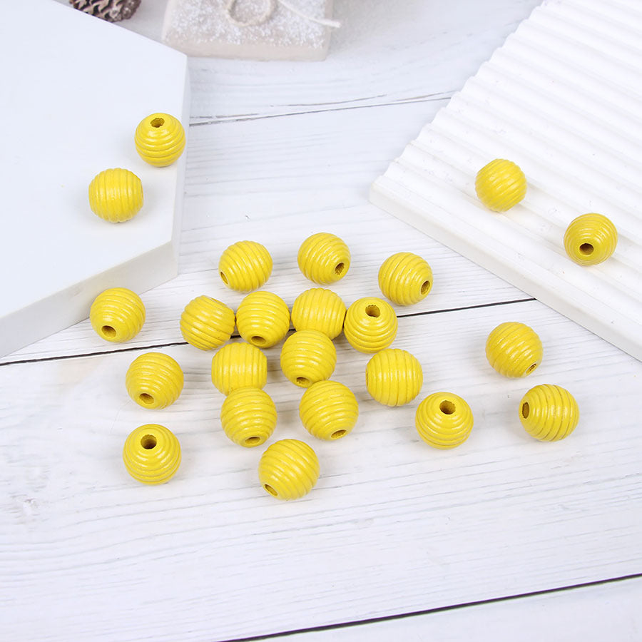 Wholesale 10pcs 16mm Bee Stripe Honeycomb Two-color Lotus Wood Round Beads