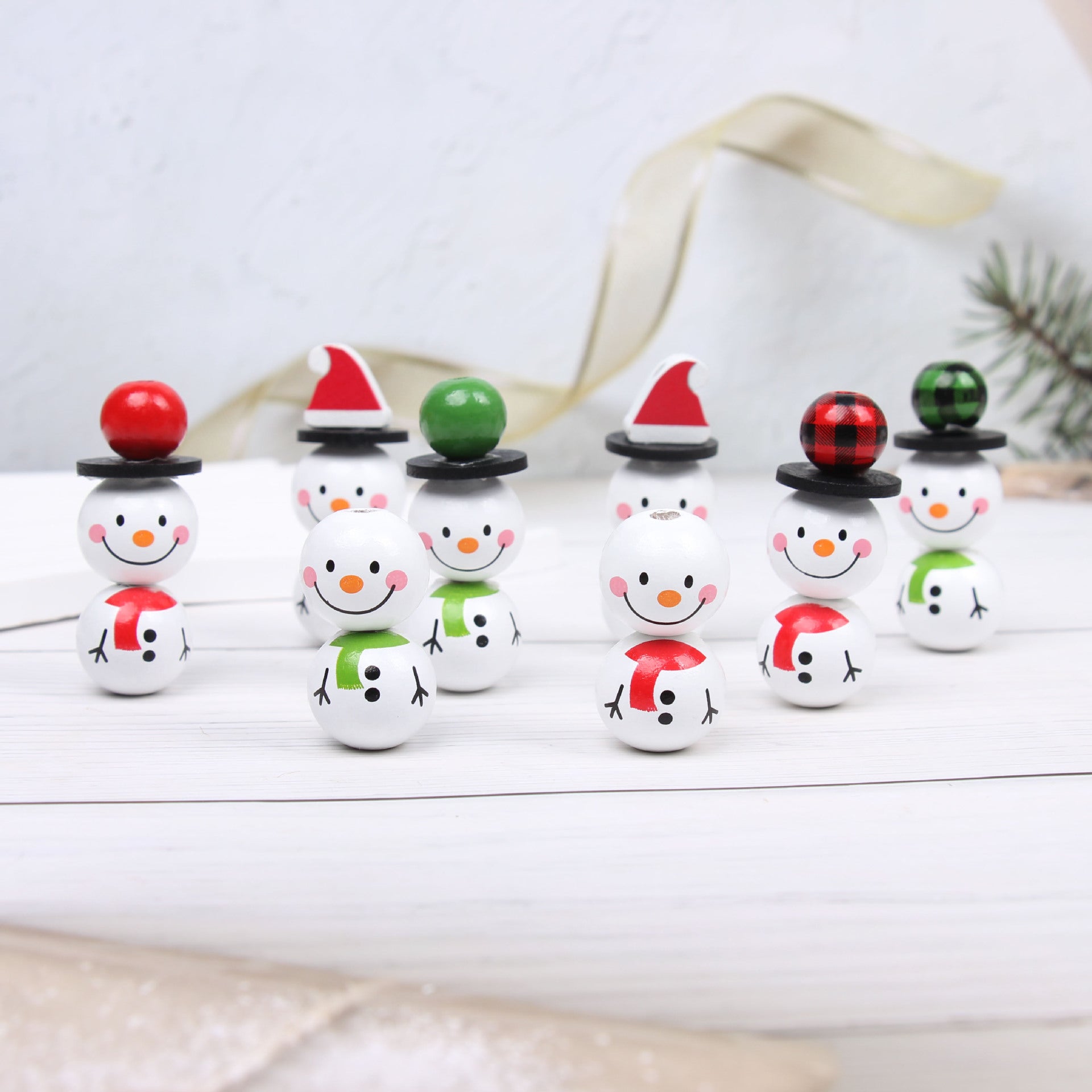 Wholesale 10PCS Snowman Wooden Beads