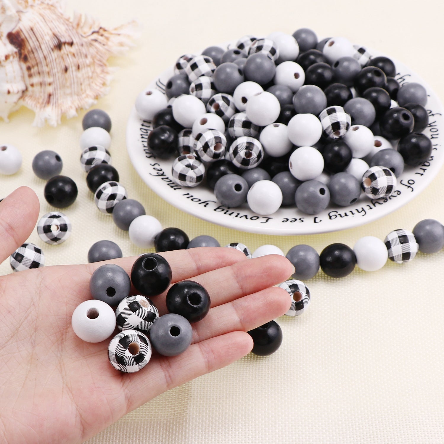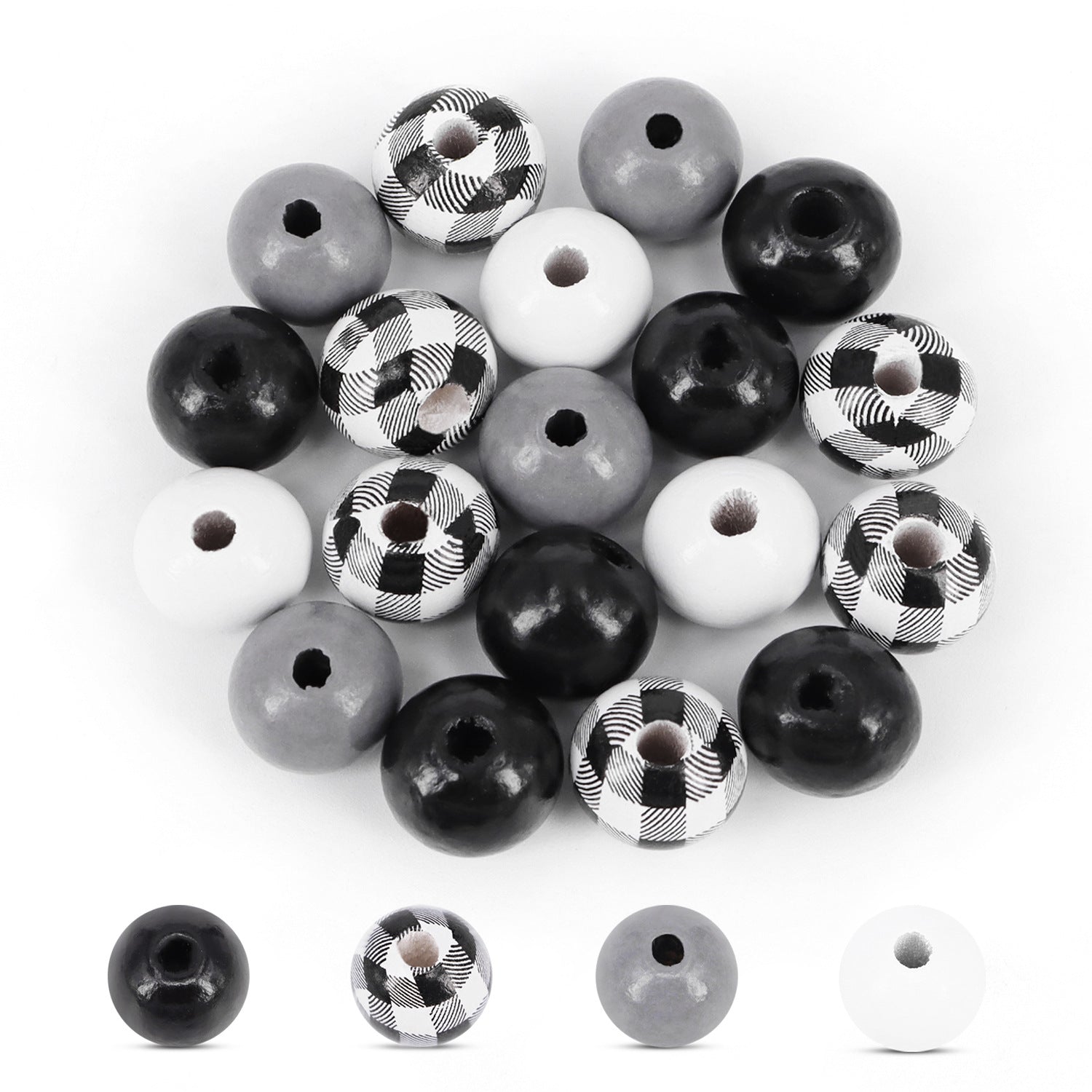 Wholesale 20PCS/Pack 15MM Black and White Plaid Wood Beads