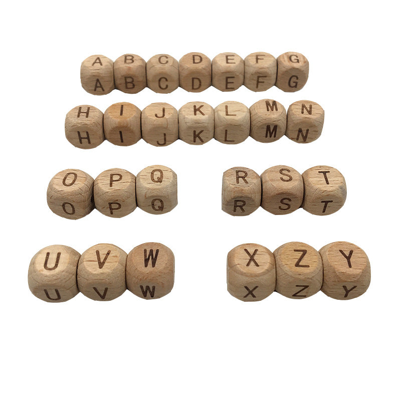 Wholesale 10pcs 1.2cm Hole Beech Wood Dice English Alphabet Wooden Beads