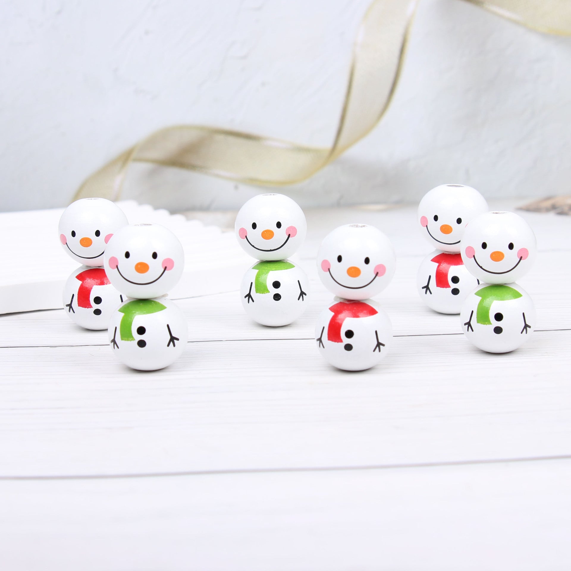 Wholesale 20PCS DIY 20mm Christmas Snowman Scarf Wooden Beads