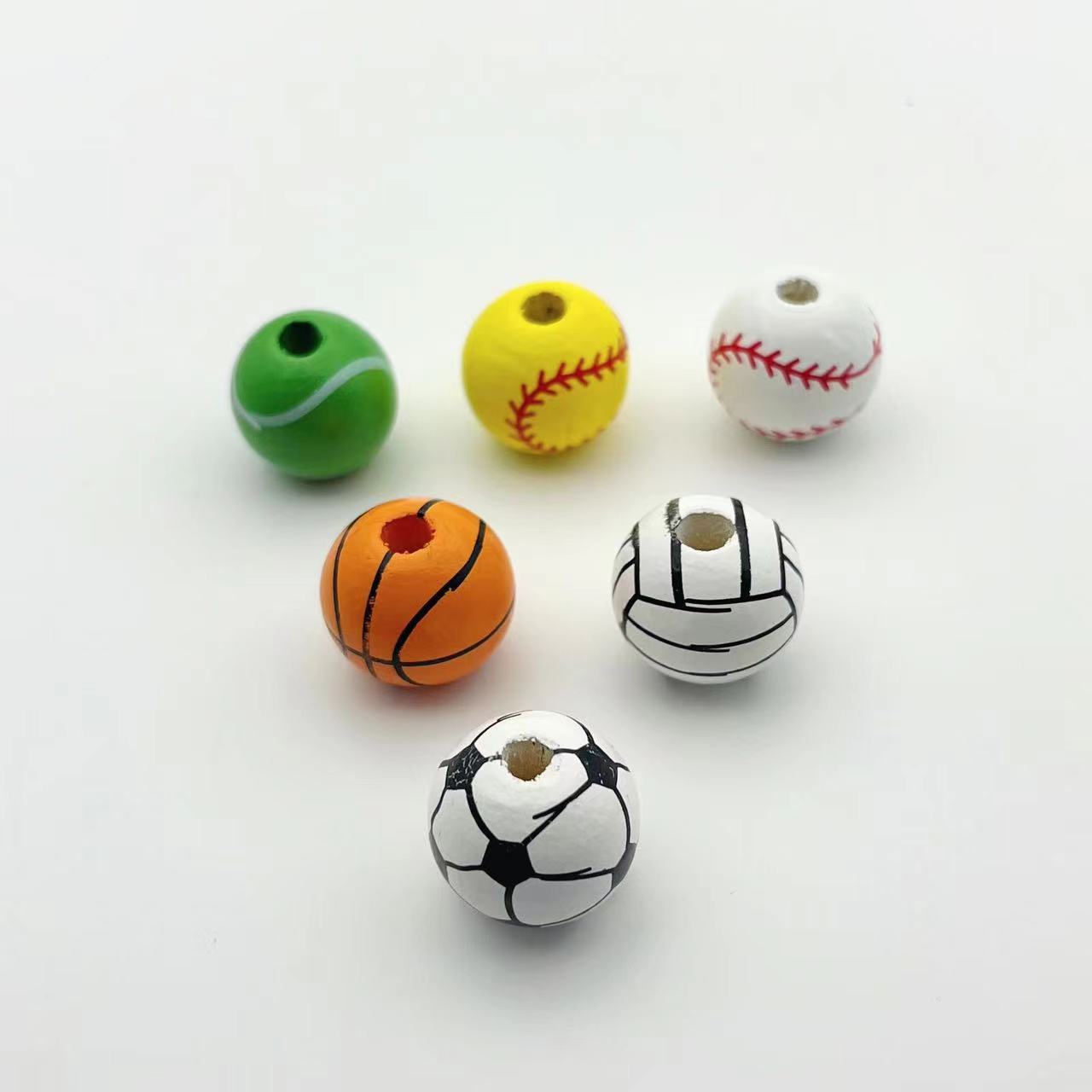 Wholesale 10pcs/pack Color Solid Wood Basketball Soccer Ball Beads