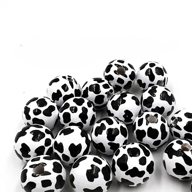 Wholesale 10pcs 16MM Cow Pattern Colored Wood Beads