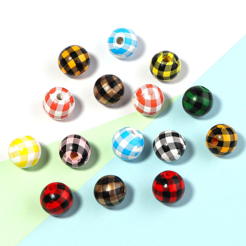 Wholesale 20PCS/Pack Check Stripe Wooden Beads 16mm