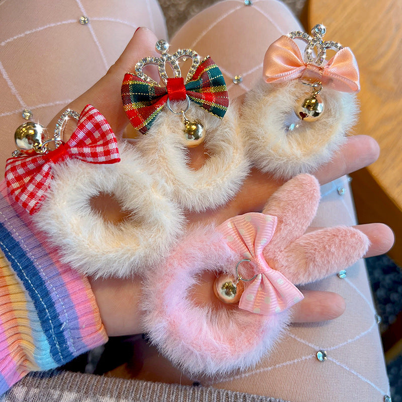 Wholesale Christmas Plaid Bow Crown Plush Hair Tie