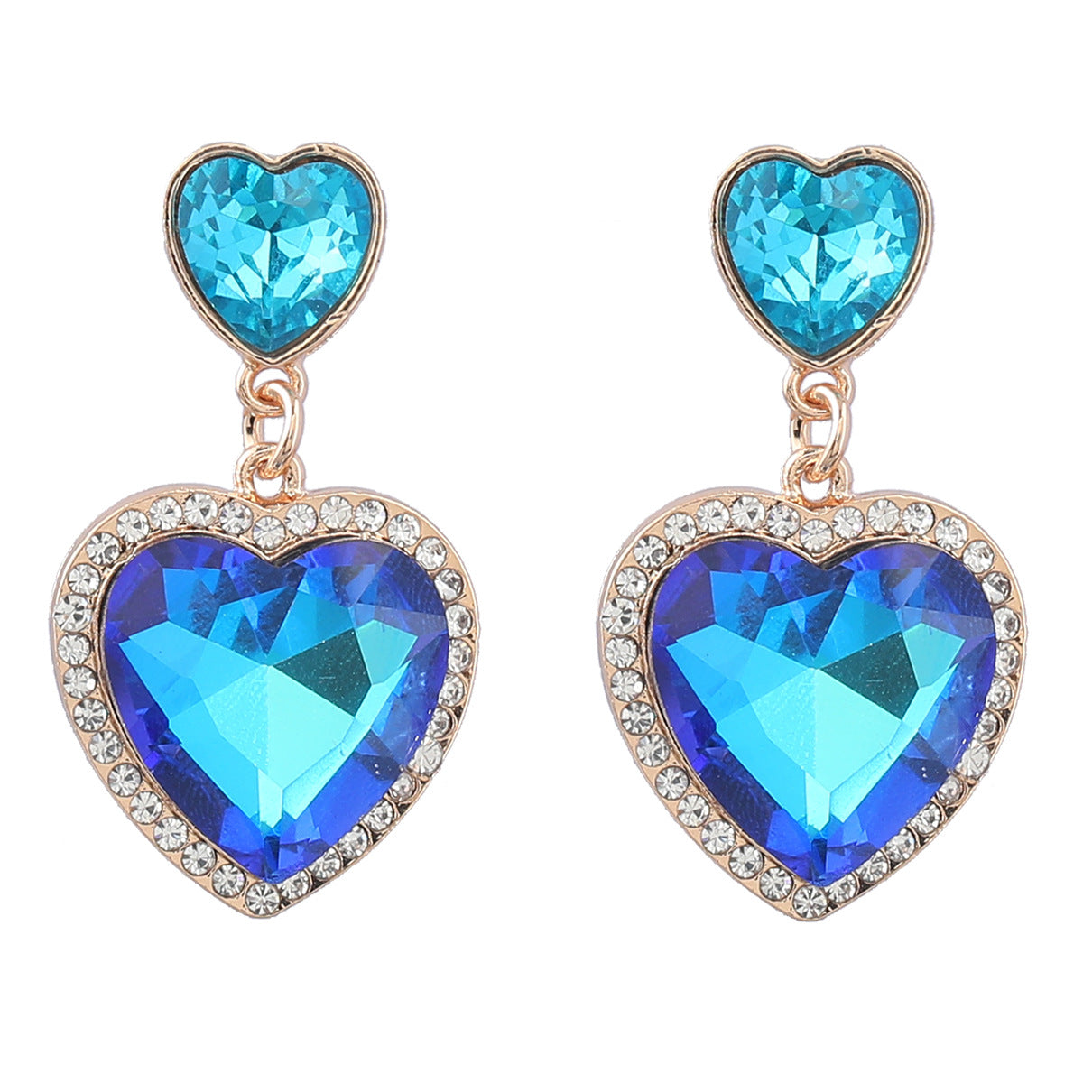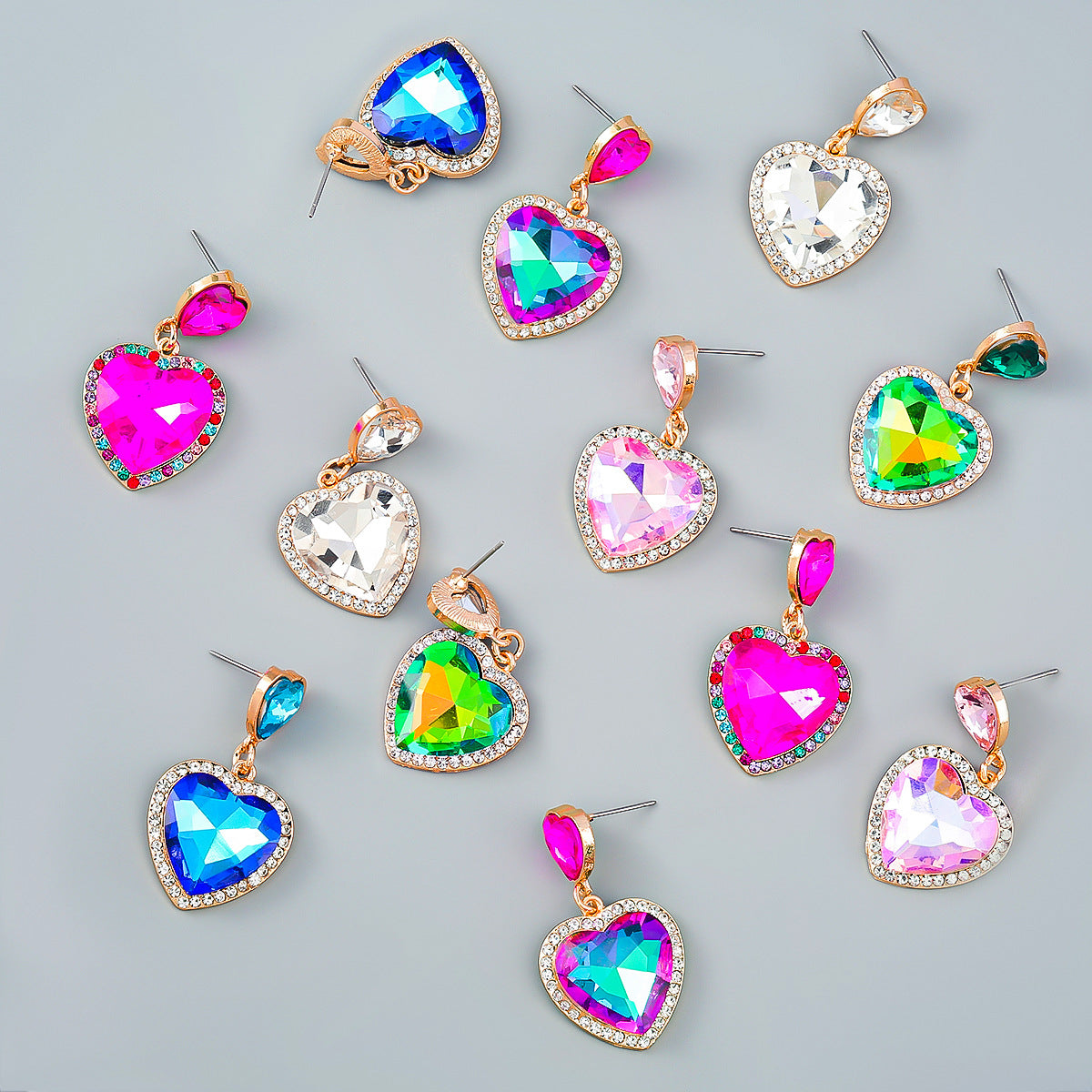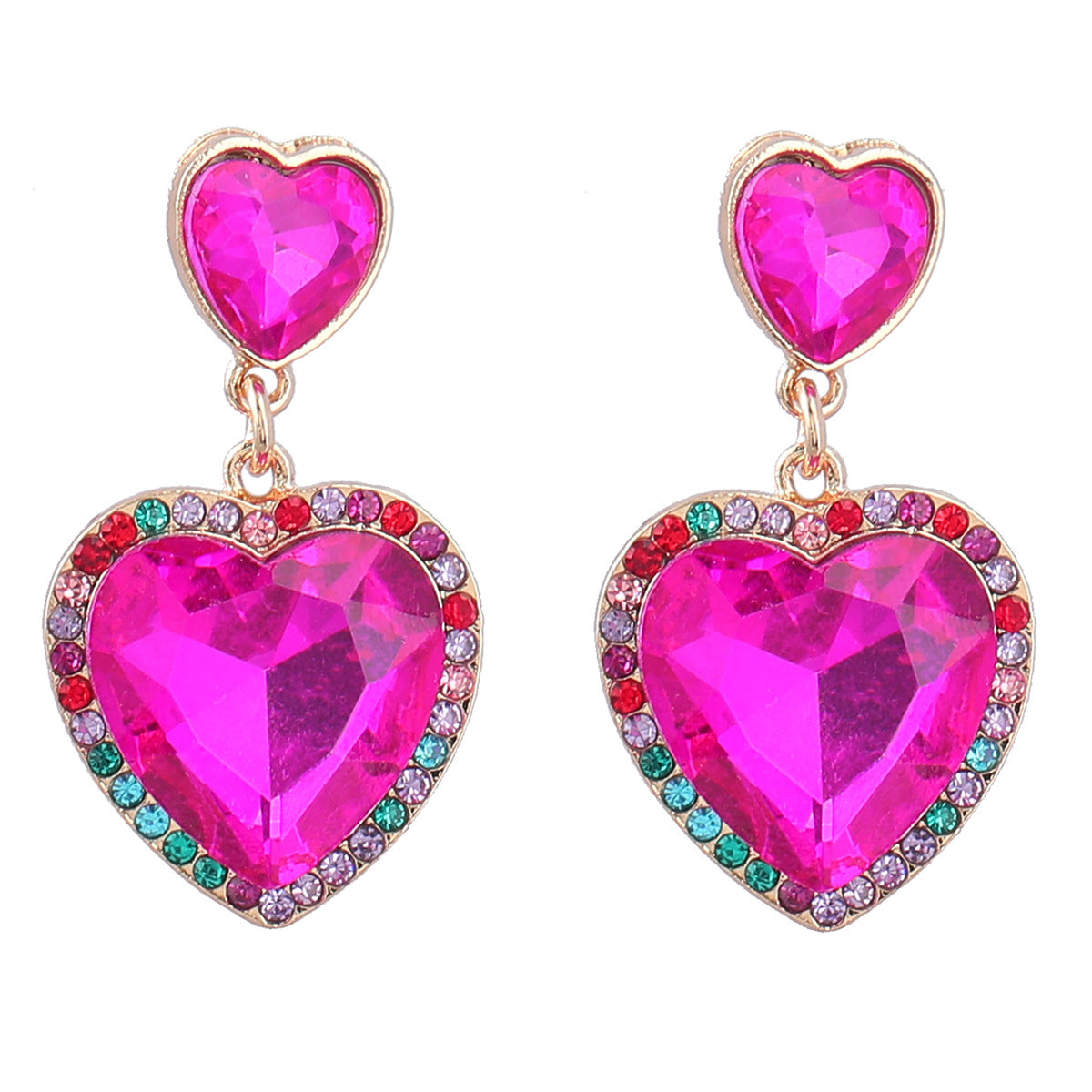 Wholesale Colored diamond studded heart-shaped earrings