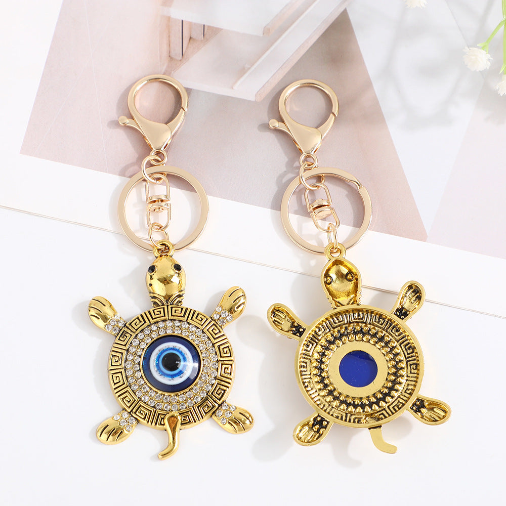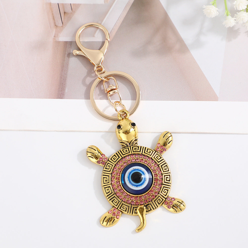Wholesale Devil' s Eye Turtle Blue Eyes with Water Diamond Metal Keychain