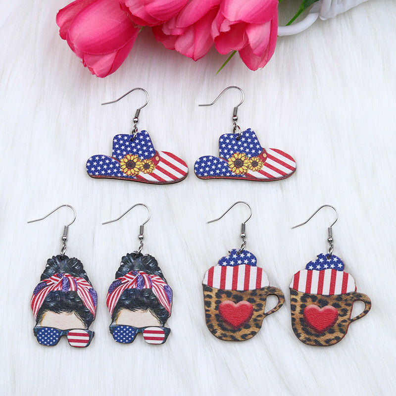Wholesale Hat Girl with Sunglasses Love Heart Leopard Cup Wood Earrings