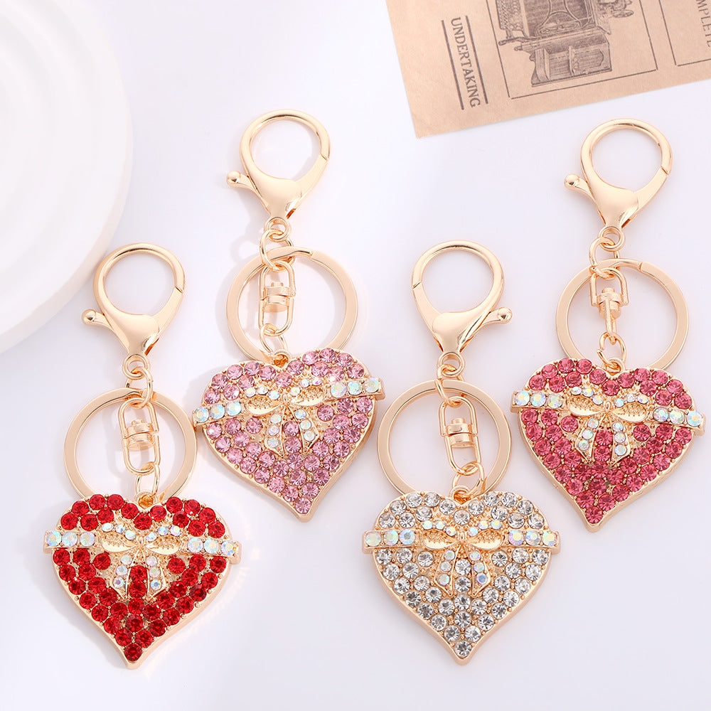 Wholesale Heart shaped bow set with rhinestones Metal Keychain