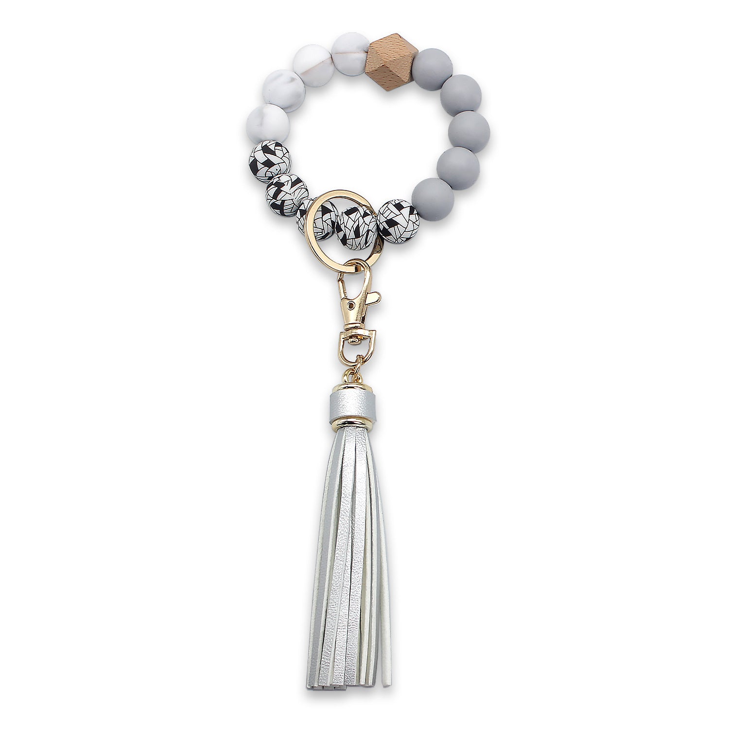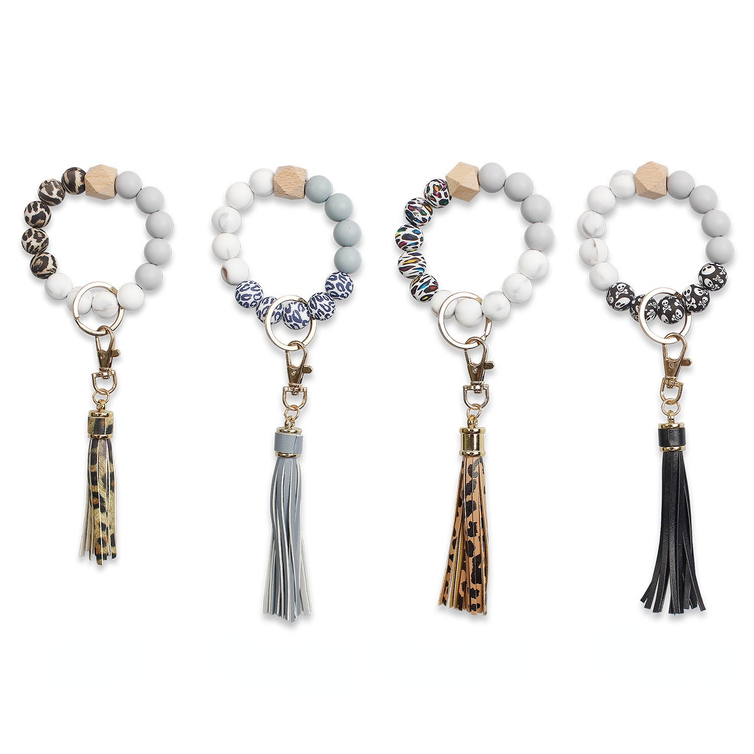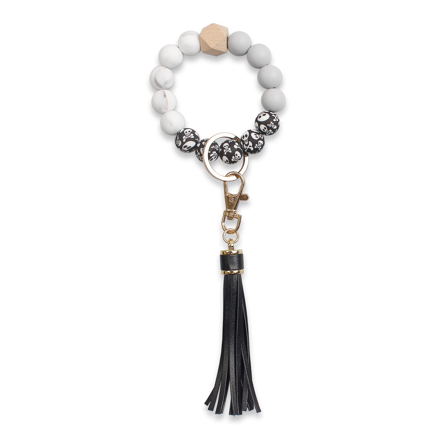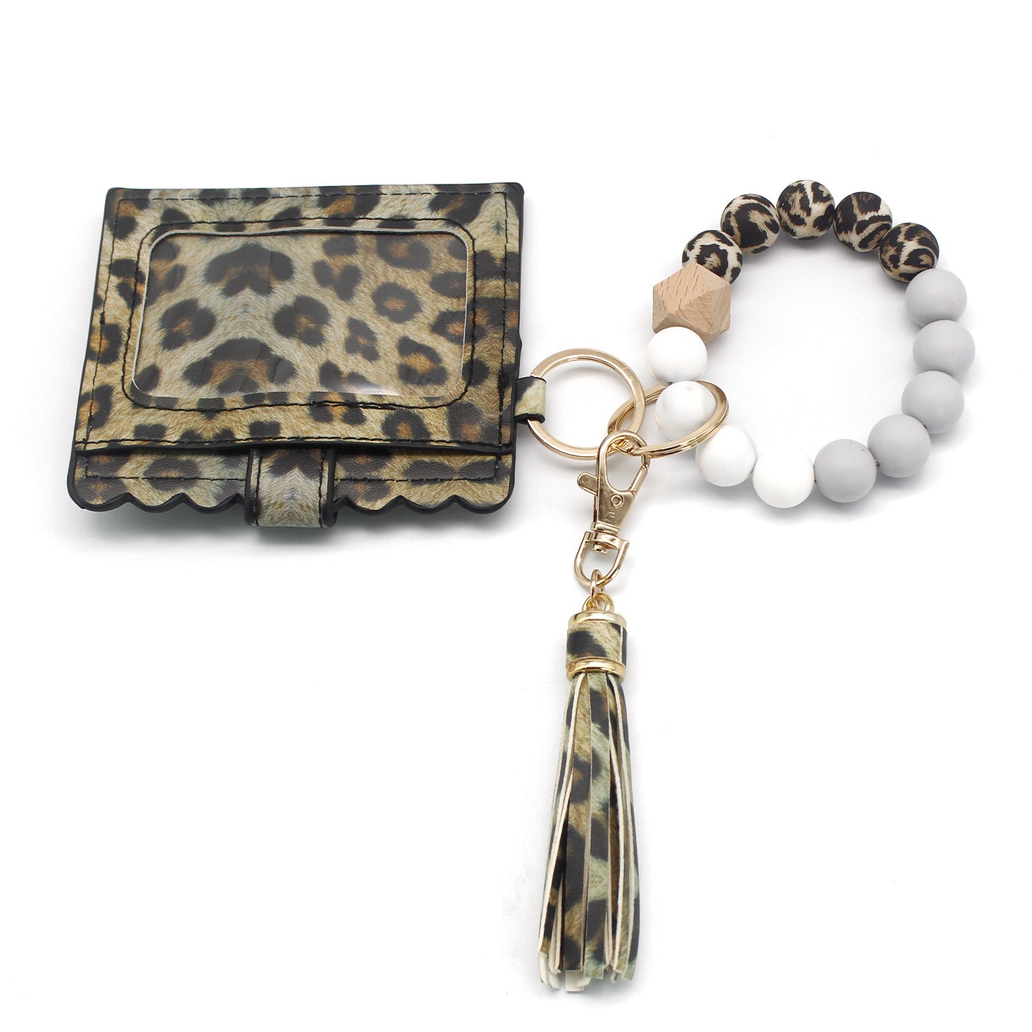 Wholesale Leopard Print Silicone Beaded Wrist Keychain