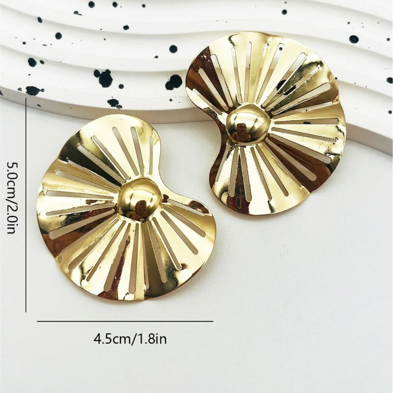 Wholesale Metal Fashion Personality Light Luxury Atmosphere Versatile Geometric Lotus Leaf Shaped Hollow Tassel Earrings