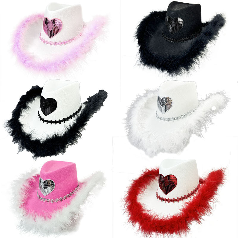 Wholesale Pink Fur Western Cowboy Hat Valentine's Day Pink Hair Love Cowboy Hat Carnival Love Shaped Hat