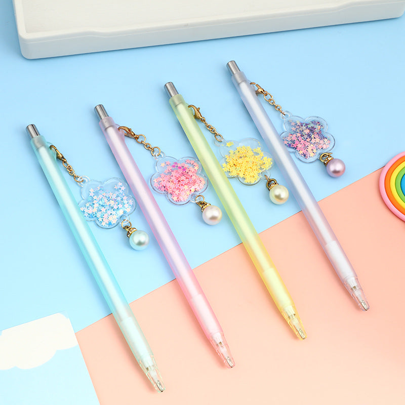 Wholesale translucent pearl flower pen body can replace core pencil writing stationery