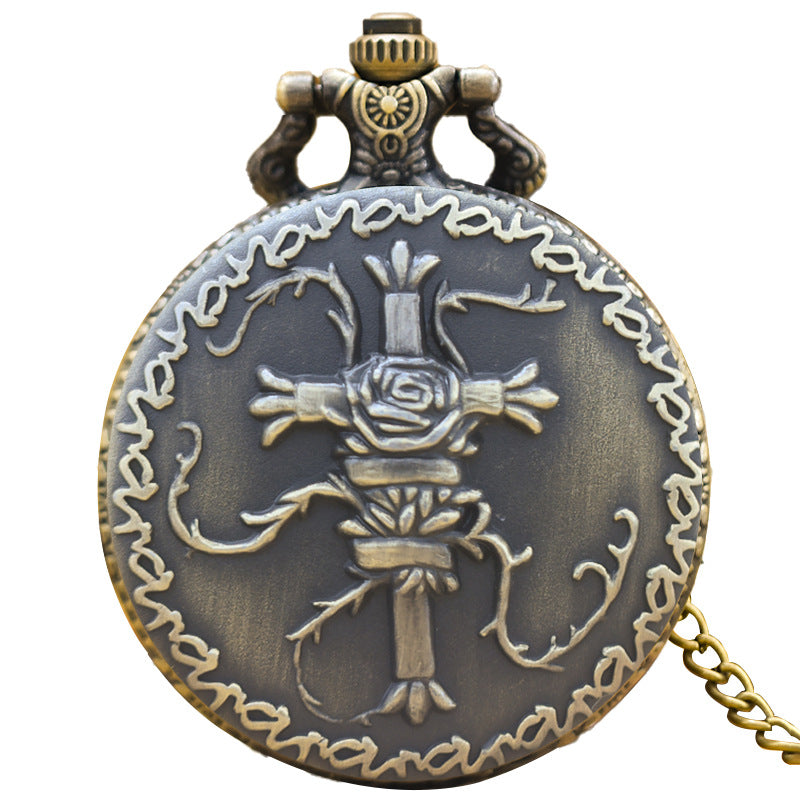 Wholesale Vintage Bronze Cross Pattern Flip up Quartz Pocket Watch