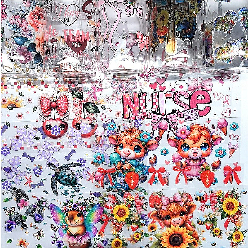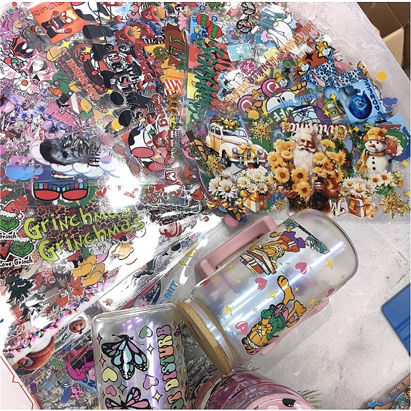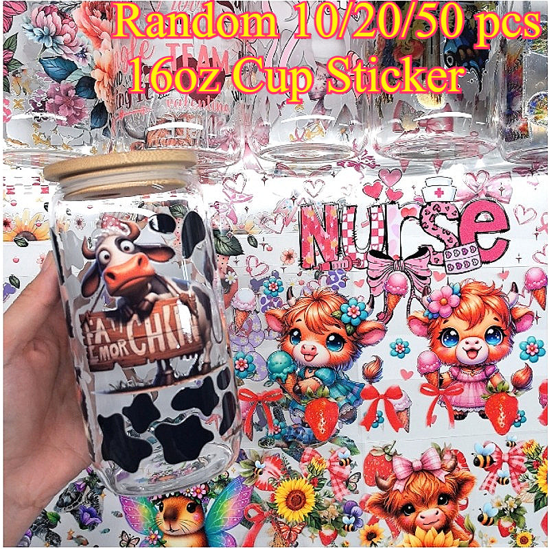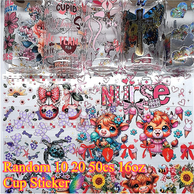 Wholesale 16oz Random 10/50pcs UV DTF Packing and Cartoon Random Cup Stickers
