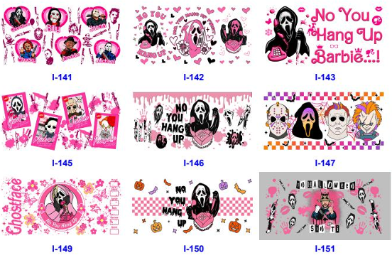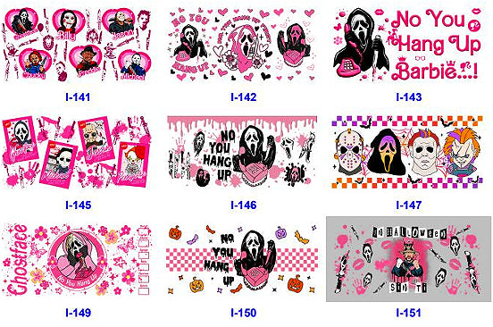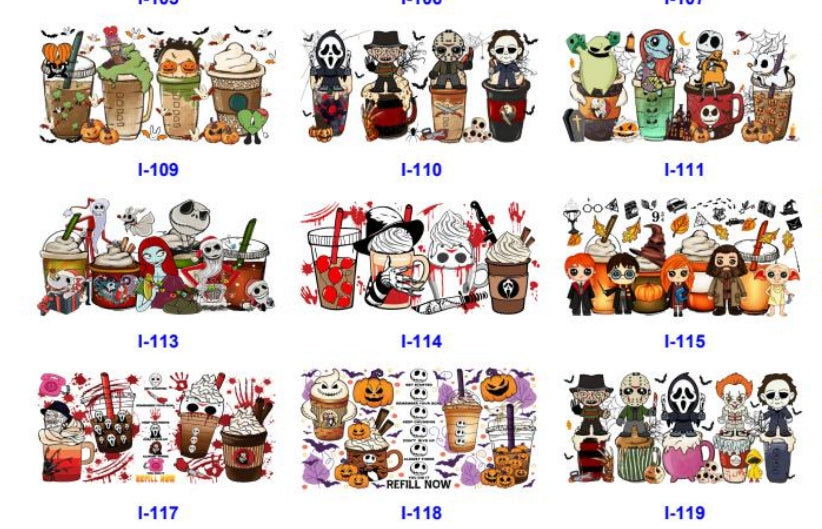 Wholesale 5pcs Halloween Cartoon Characters 16oz Single-Sided Cup Stickers