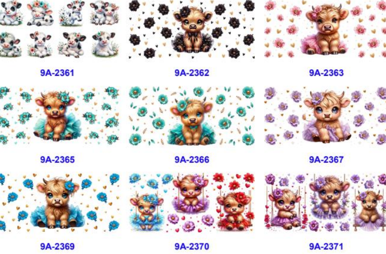 Wholesale 5pcs Cute Flower Cows 16oz Single-Sided Cup Stickers