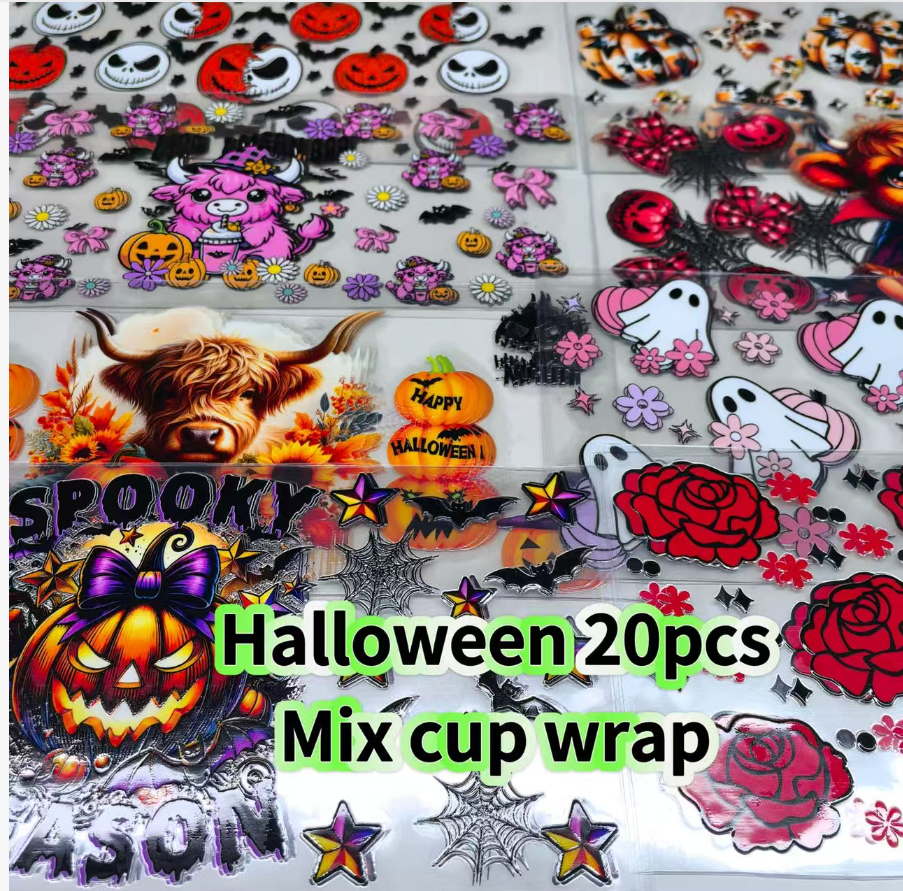 Wholesale 5pcs Halloween 16oz Single-Sided Cup Stickers