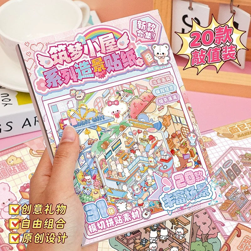 Wholesale Zaomo miniature scene sticker book Sunshine Town 3D cartoon house