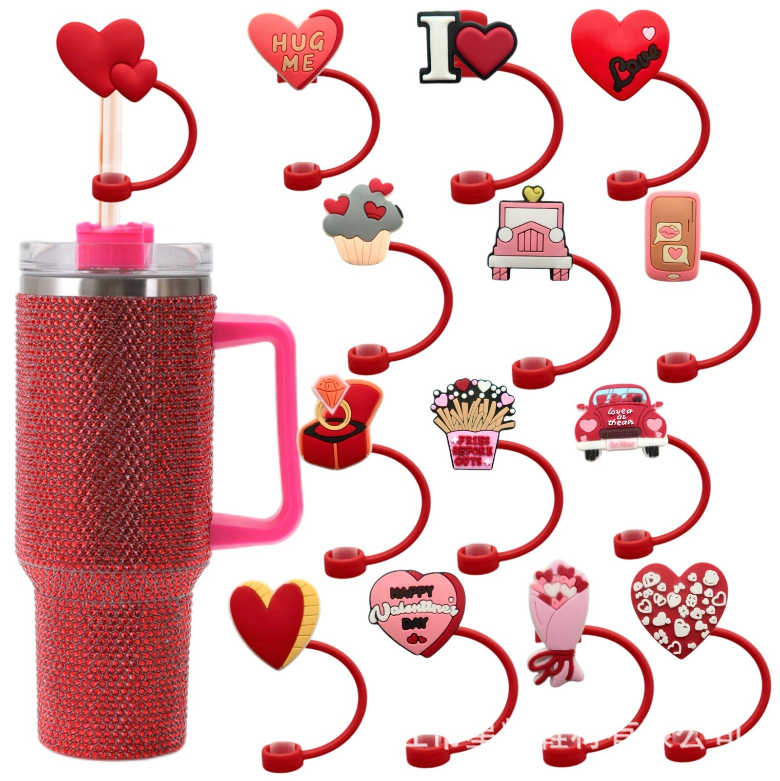 Wholesale Valentine's Day Love Series Straw Cap Silicone Straw Dust Plug Red Water Cup 8/10mm Straw Sleeve