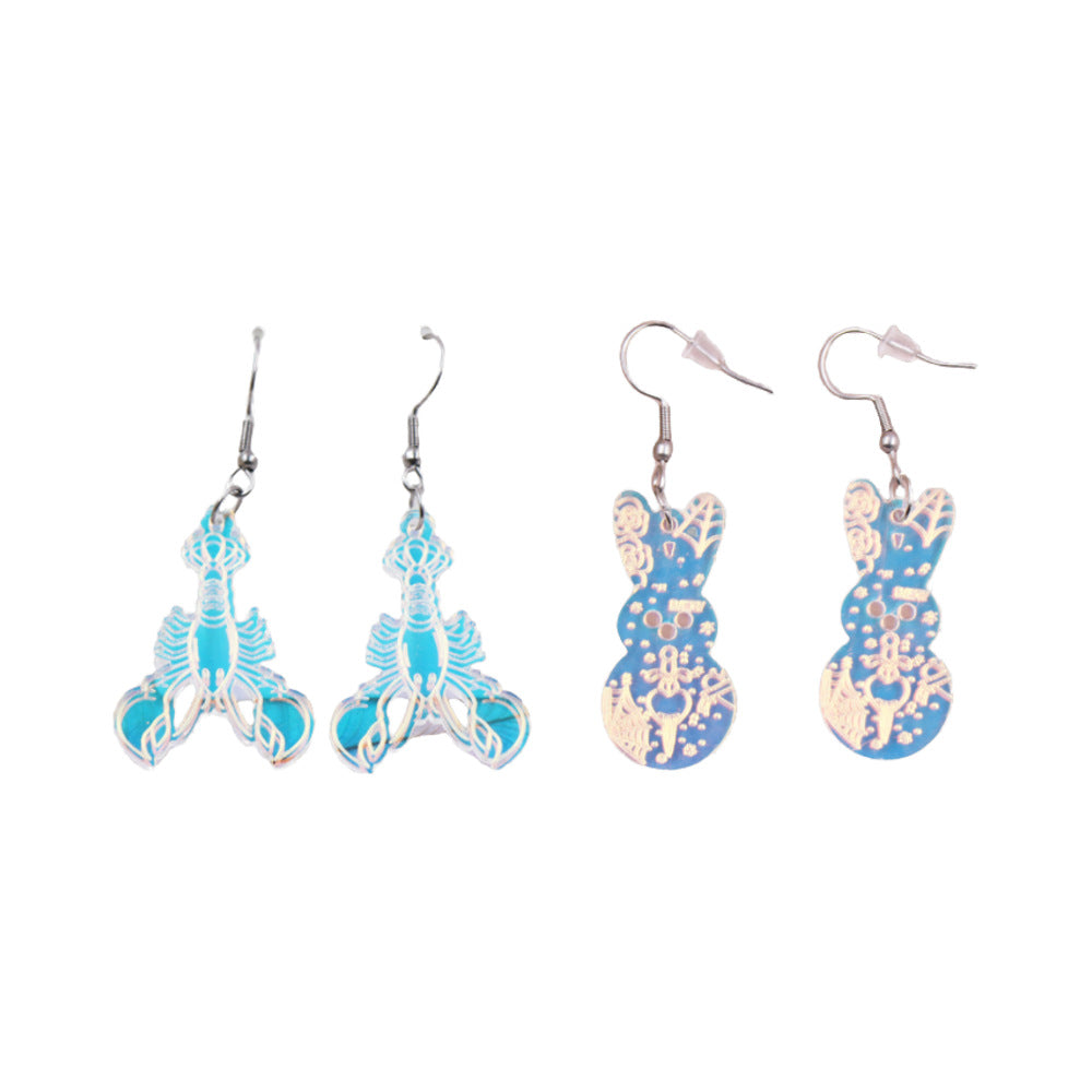 Wholesale 2D flat acrylic blue earrings transparent ear hooks