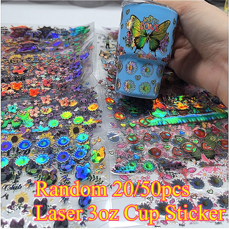 Wholesale 3oz Holographic Mini Stainless Steel Cup UV DTF Stickers Random 20pcs/50pcs Wraps for DIY Craftlaser wraps