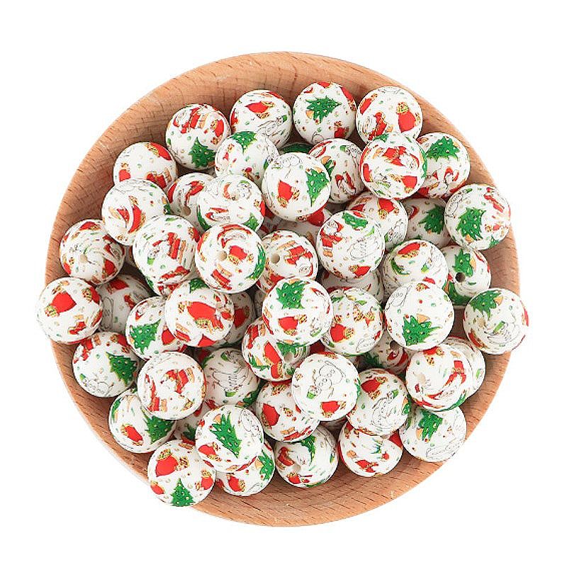 Wholesale 50pcs 15mm Water Transfer Christmas Santa Claus Christmas Tree Pattern Silicone Beads