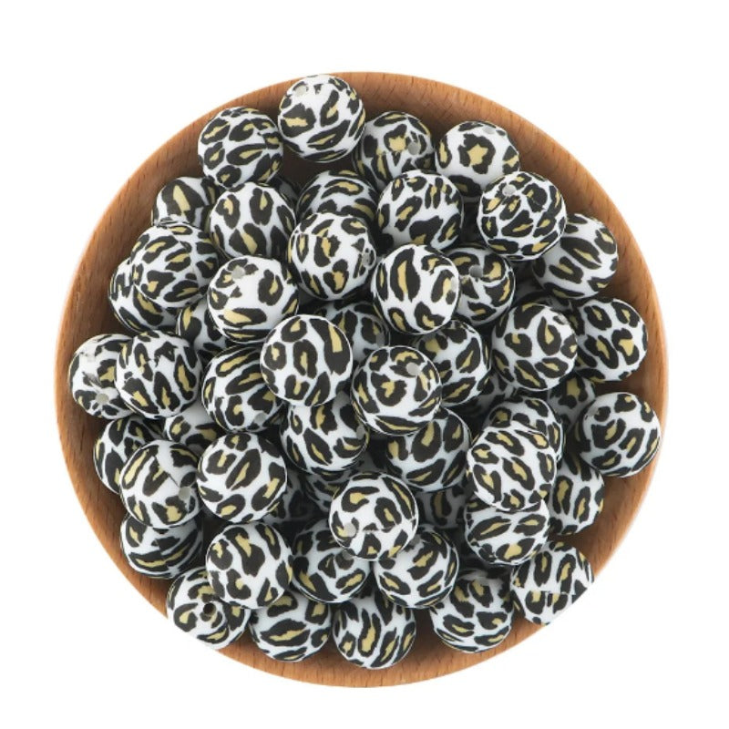 Wholesale 50pcs 15mm Water Transfer Tricolor Leopard Pattern Silicone Beads
