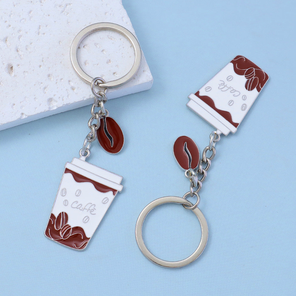 Wholesale 3pcs Coffee cup keychain metal coffee bean pendant alloy bag pendant creative gift