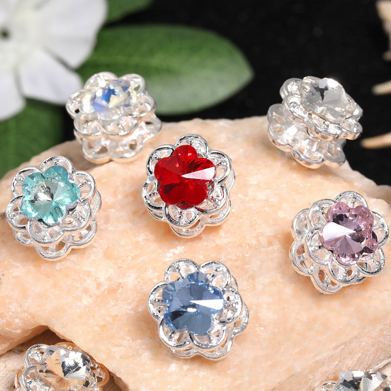 Wholesale 20pcs Heavy industry rhinestone five-petal flower diy beads double-sided hollow flower alloy beaded mobile phone chain necklace accessories