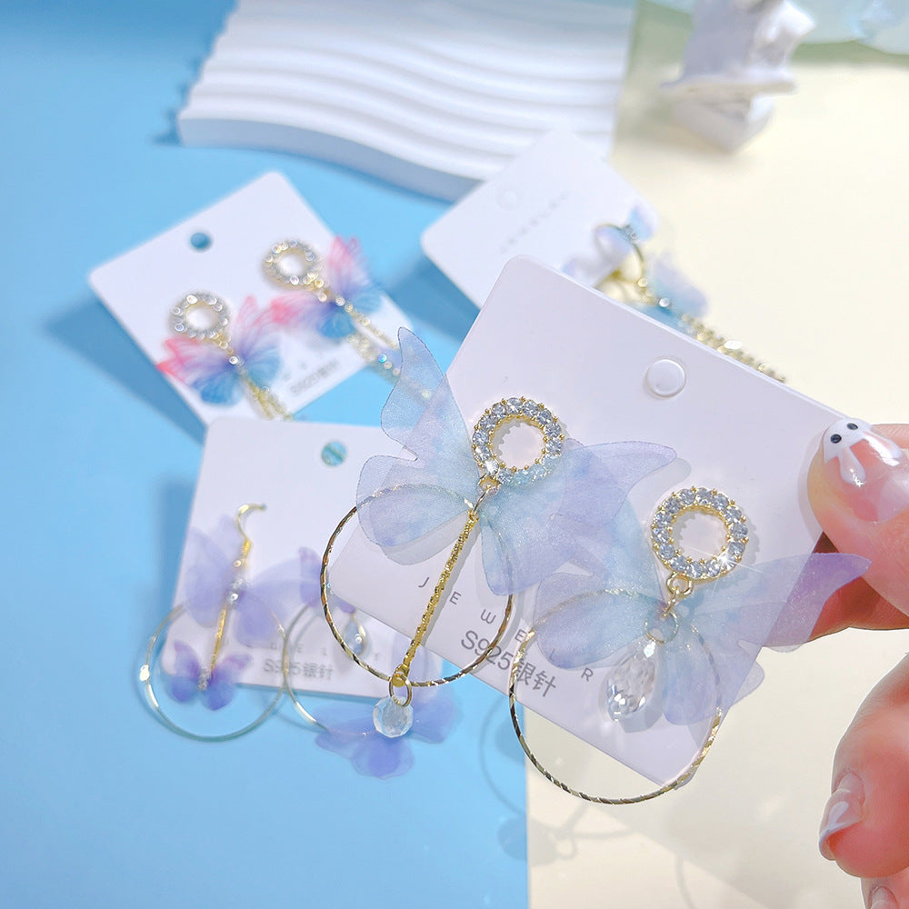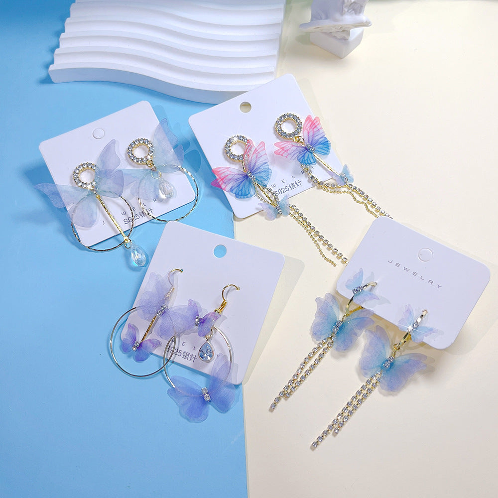 Wholesale Colored Metal Diamond Butterfly Emblem Scroll Retractable Keychain