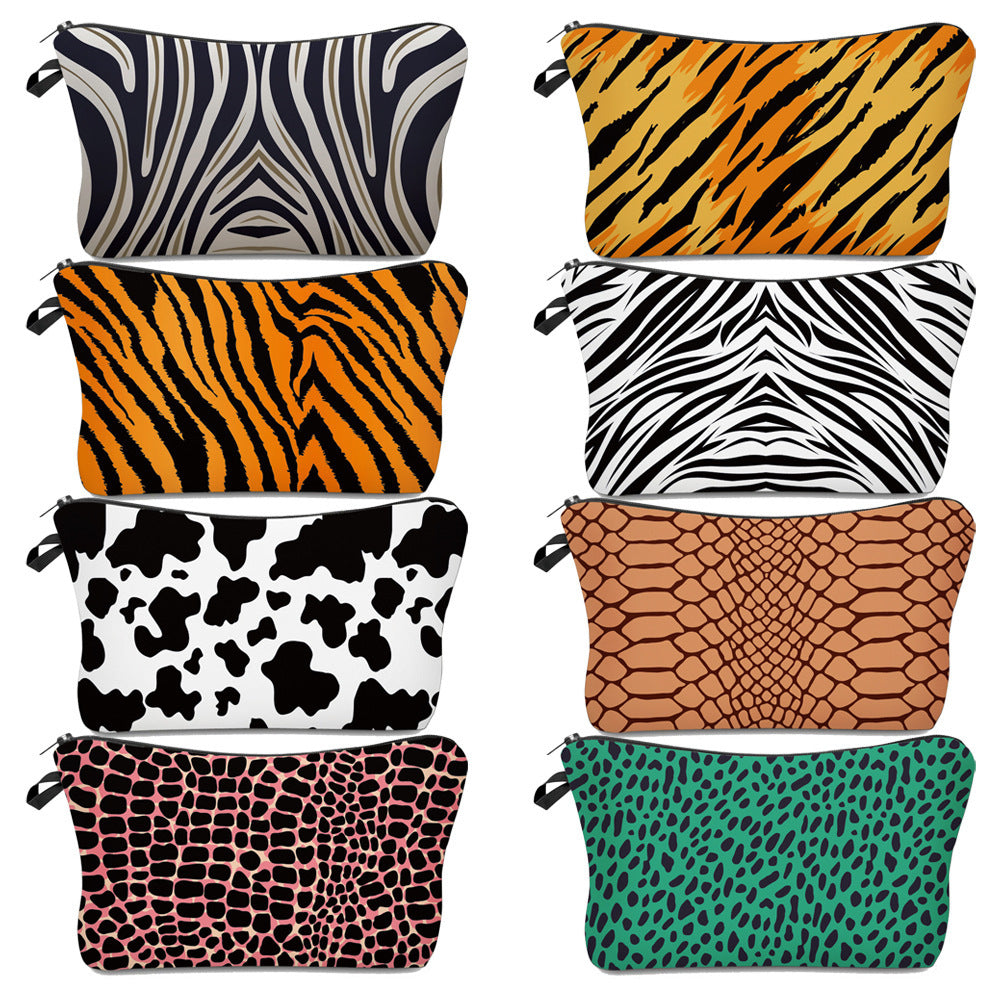 Bolsita cosmética de estampado de animal con estampado de vaca de poliéster al por mayor