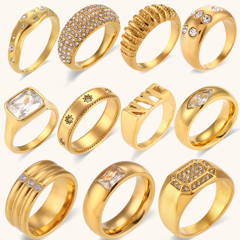 Joyería al por mayor Anillos de aleación de circón chapados en oro de 18k