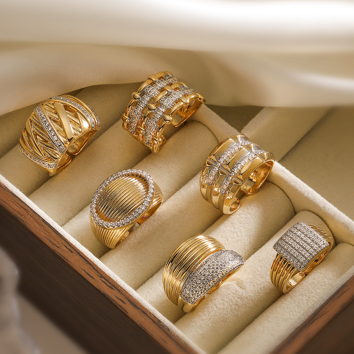 Wholesale simple and light luxury two-color electroplated zircon geometric open copper ring