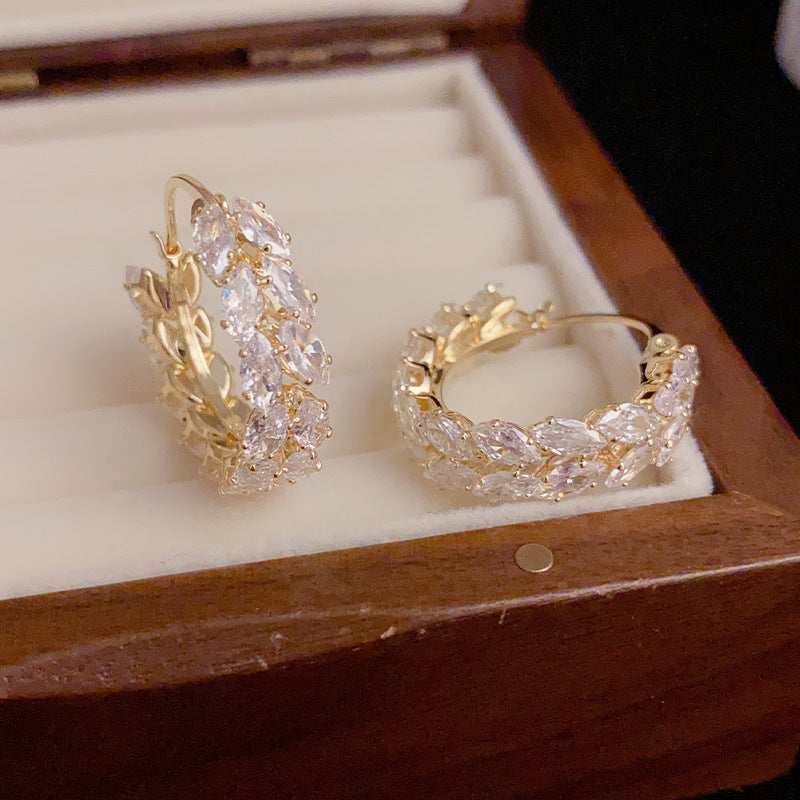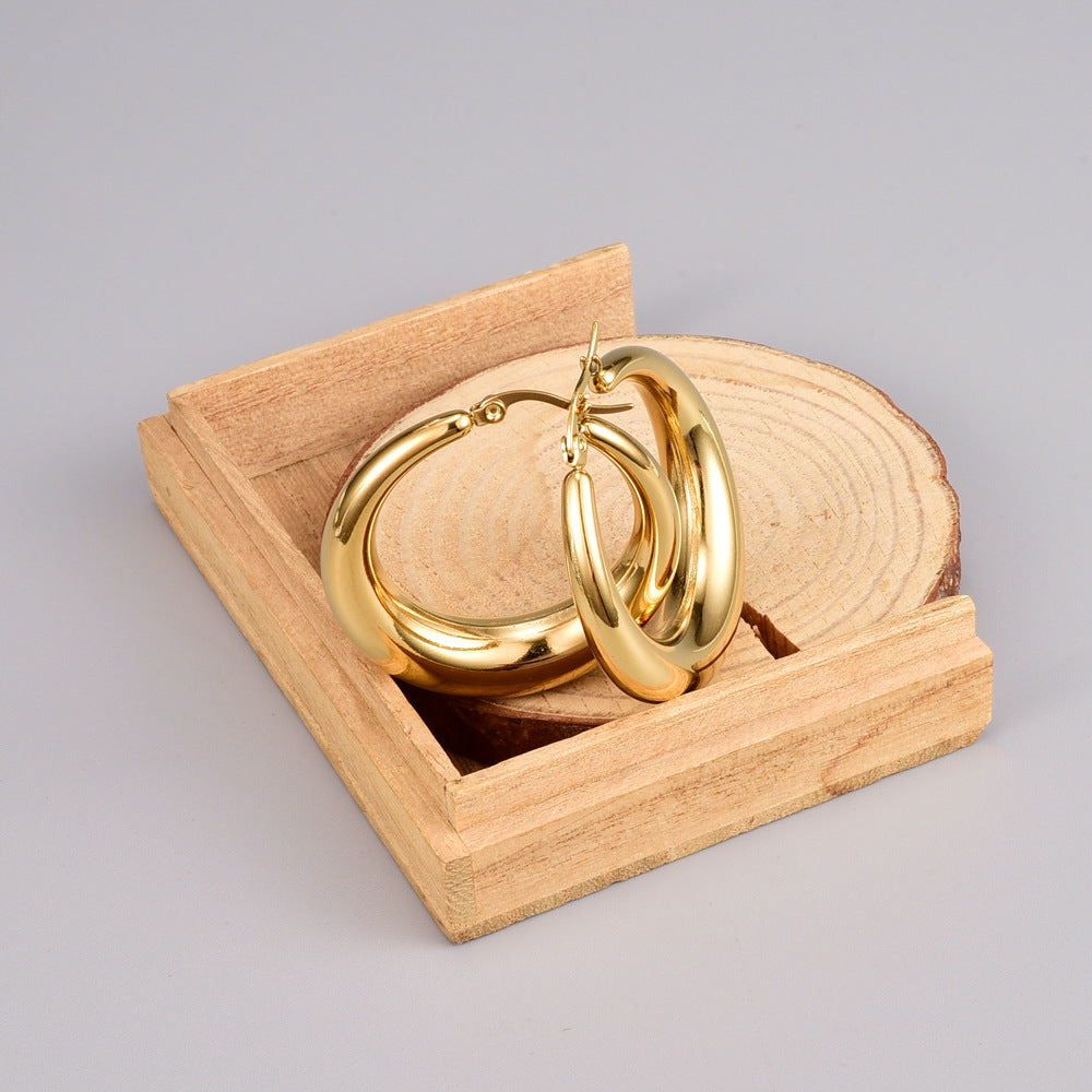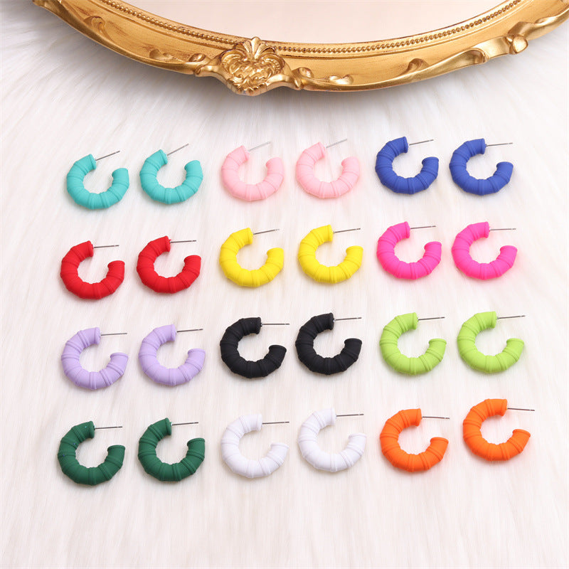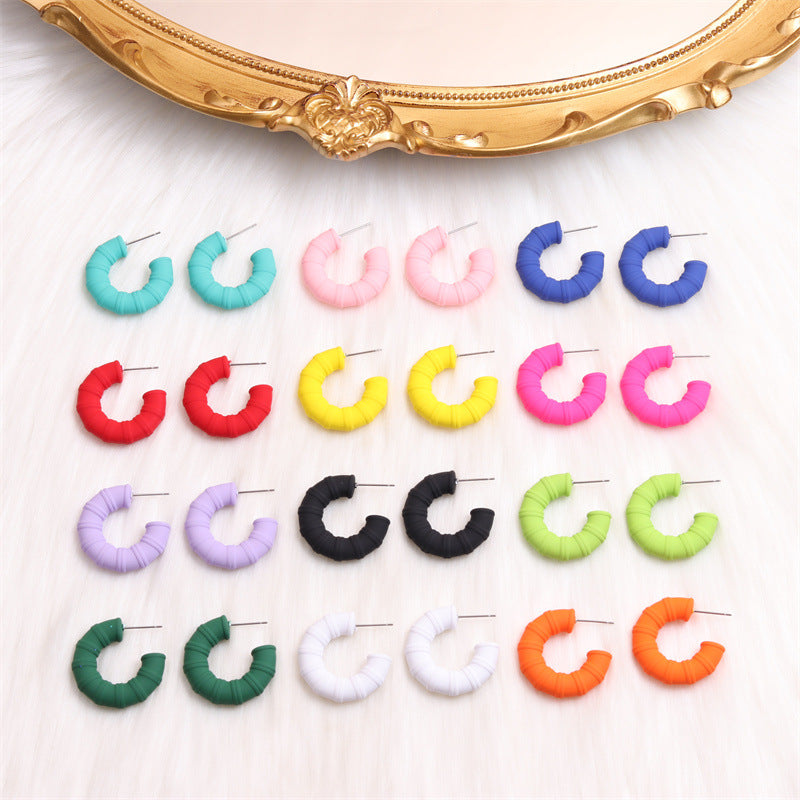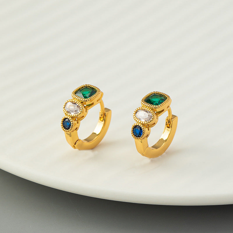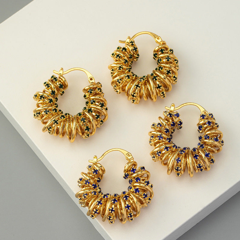 Wholesale Colored Zircon Stainless Steel Gold Plated C Shape Earrings