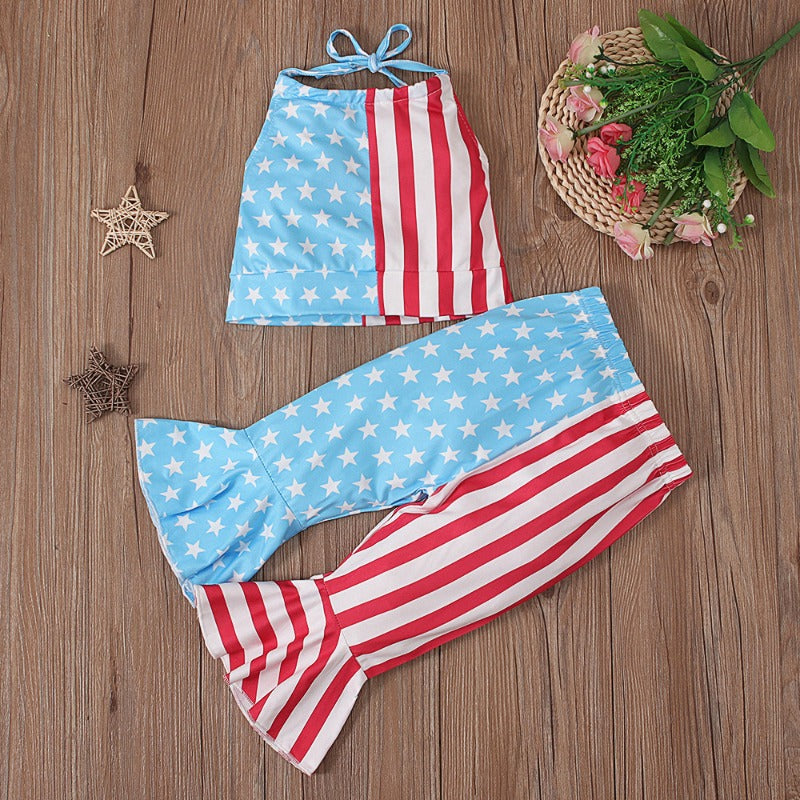Wholesale Independence Day Camisole Flare Trousers Two Piece Children's Clothing Set