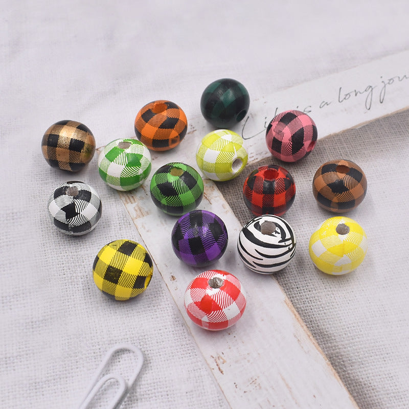 Wholesale 10PCS Creative Color Printed DIY Wooden Beads