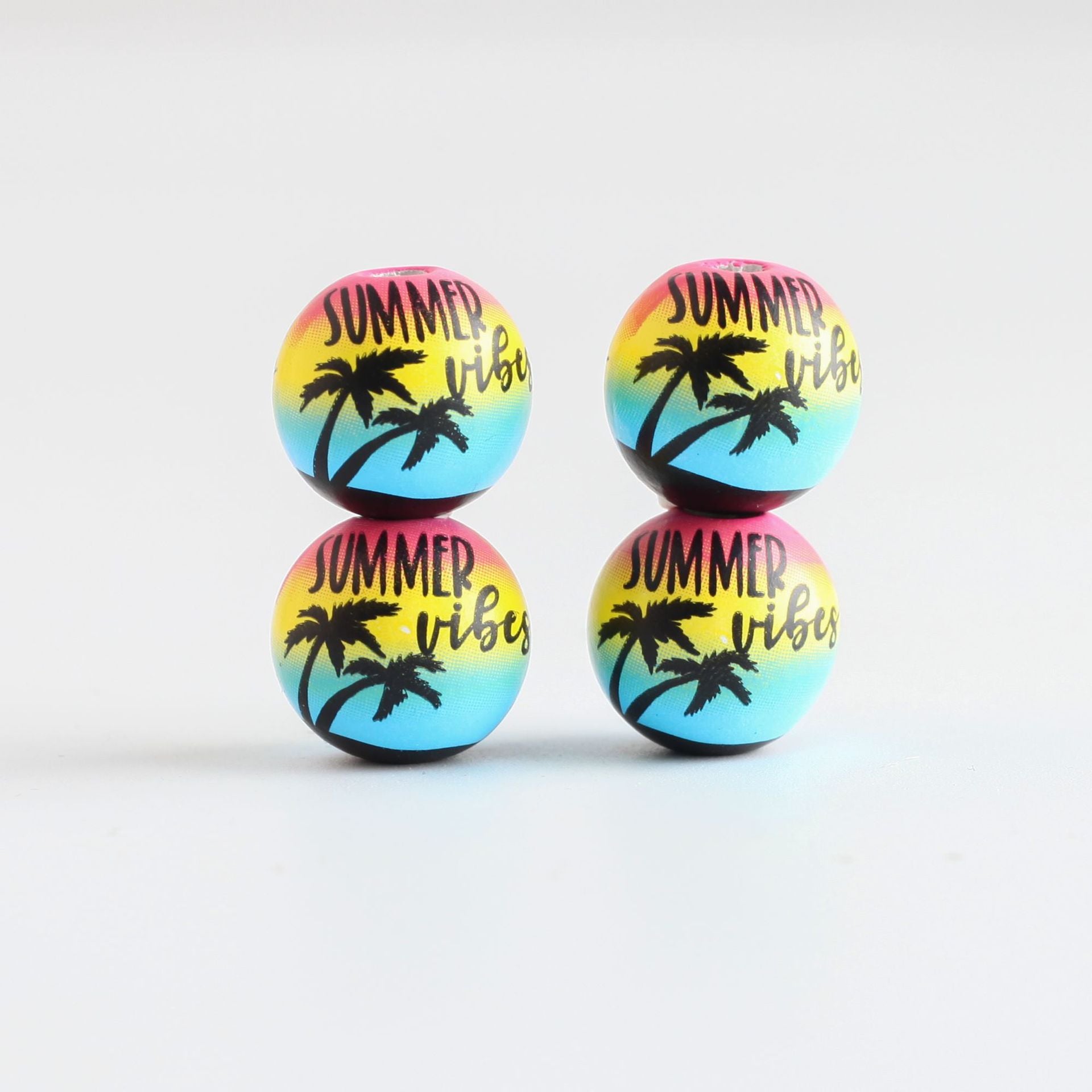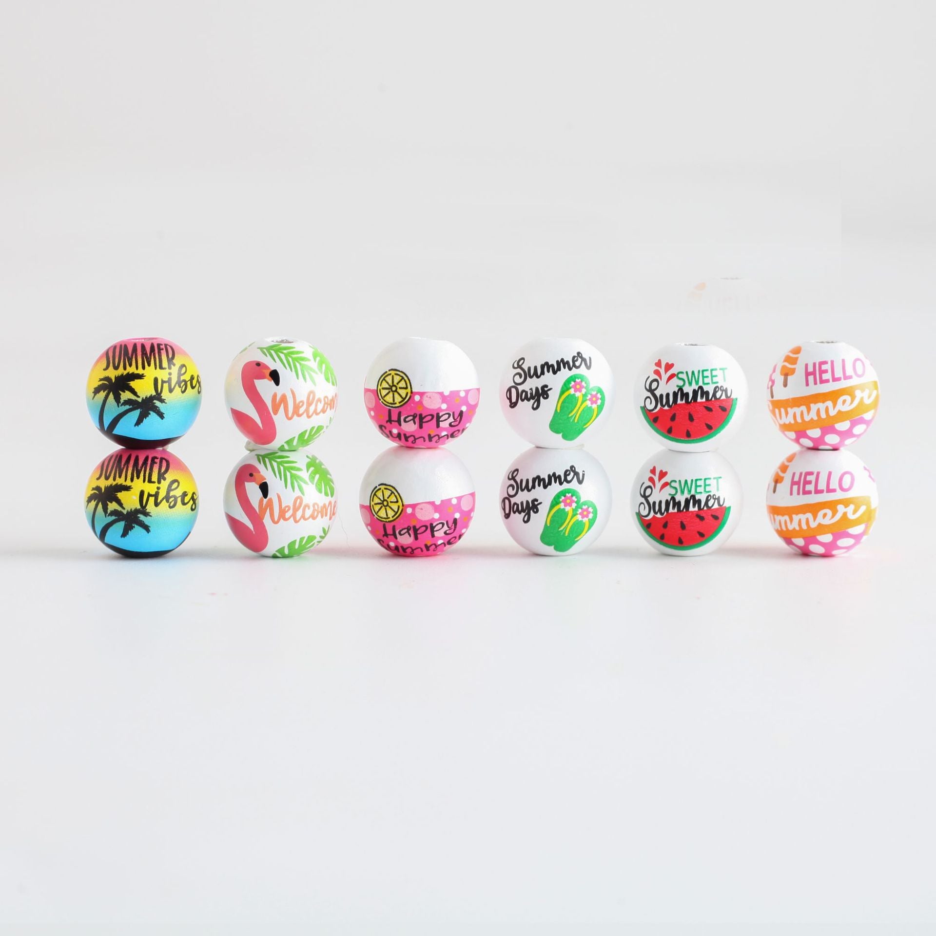 Wholesale 10PCS 4MM Summer Printed DIY Wooden Beads
