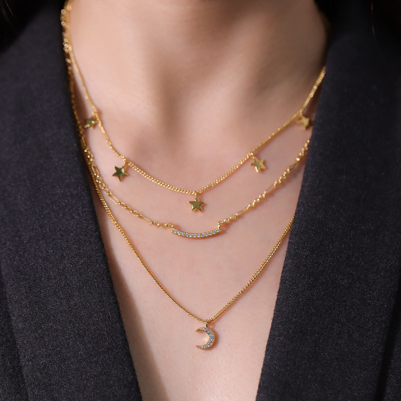 Wholesale Copper Inlaid Zirconium Plated Genuine Gold Multi-layer Stacked Necklace Collarbone Chain