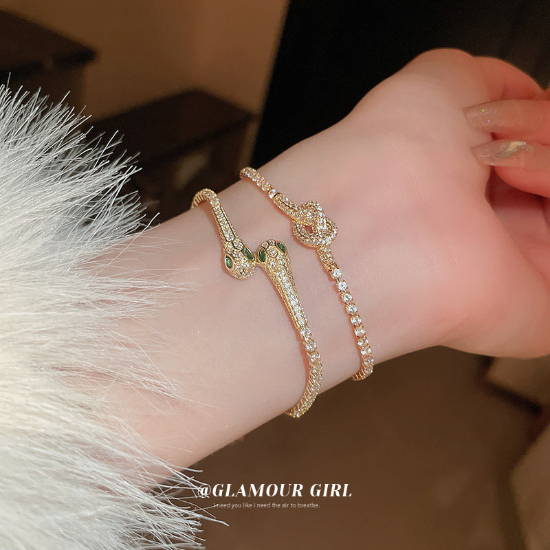 Wholesale Real Gold Electroplated Zircon Snake Pull-out Bracelet