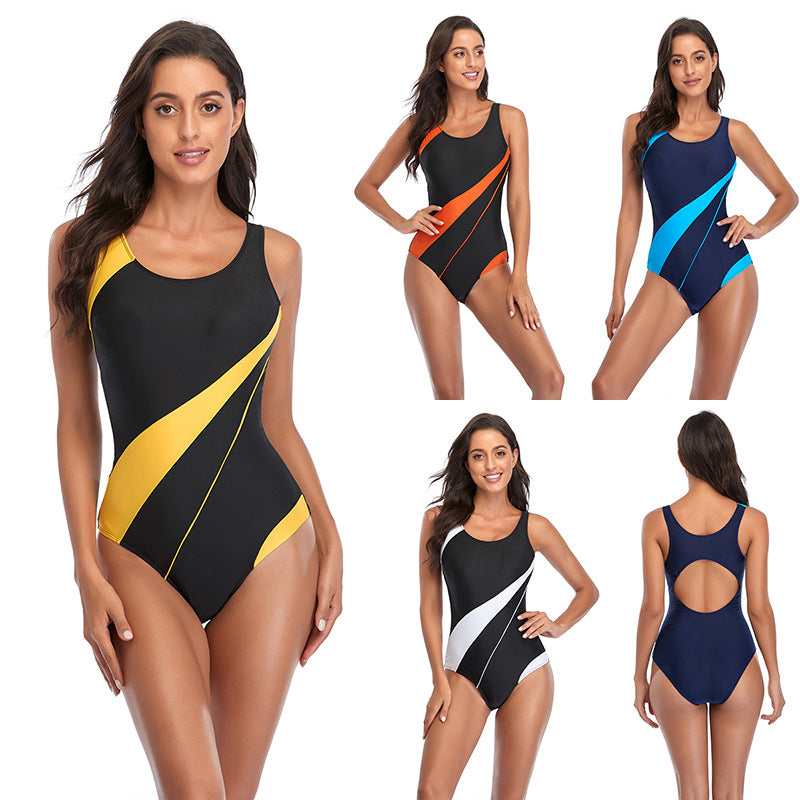 Traje de baño de poliéster de una pieza a juego con rayas diagonales al por mayor