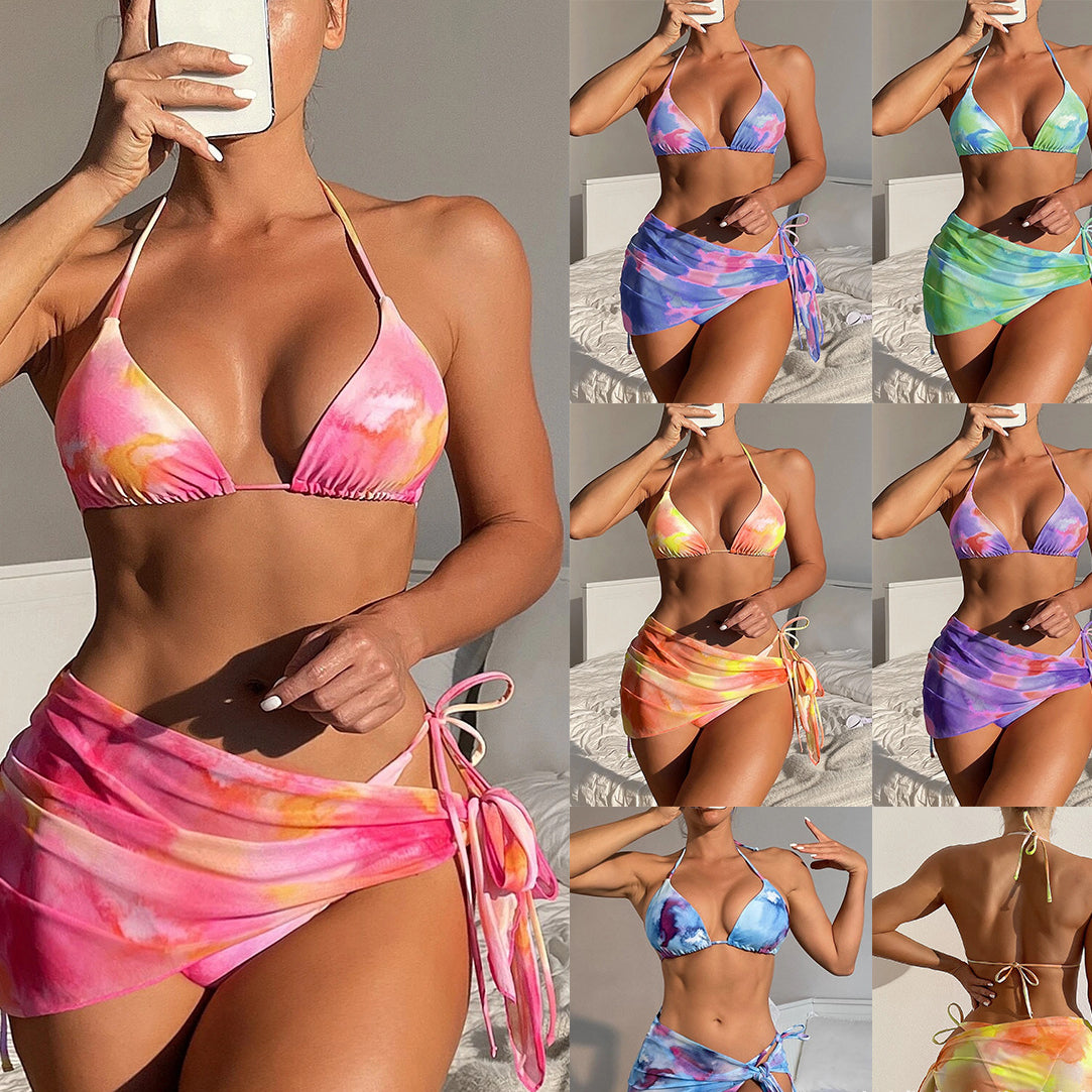 Venta al por mayor Tie Dye Falda Traje de baño de poliéster de dos piezas Conjunto de tres piezas