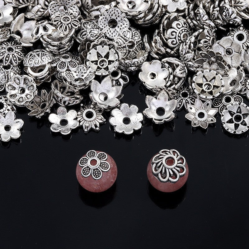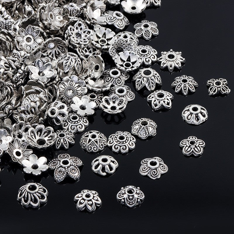 Wholesale Vintage Tibetan Silver Flower Tray Carved Beads Diy Accessories Beads