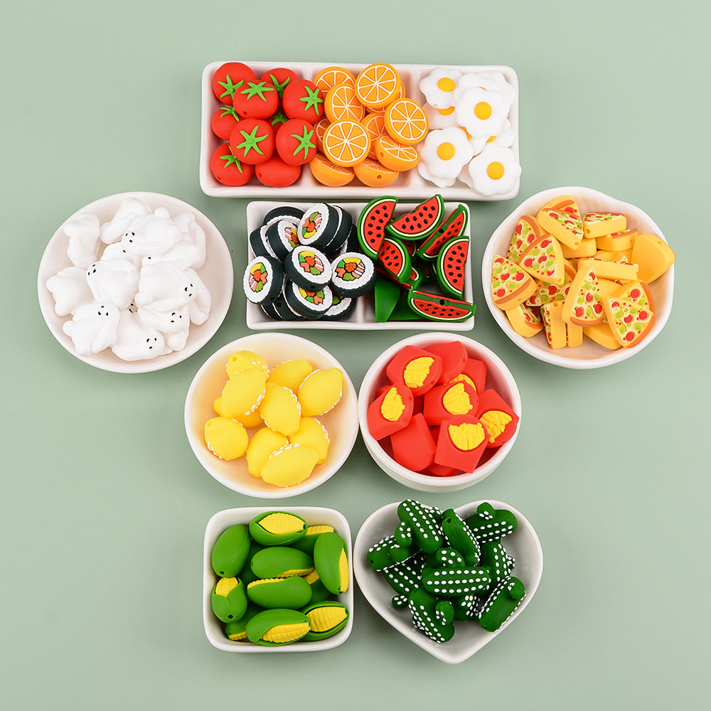 Venta al por mayor 50 piezas de perlas de silicona de maíz de frutas
