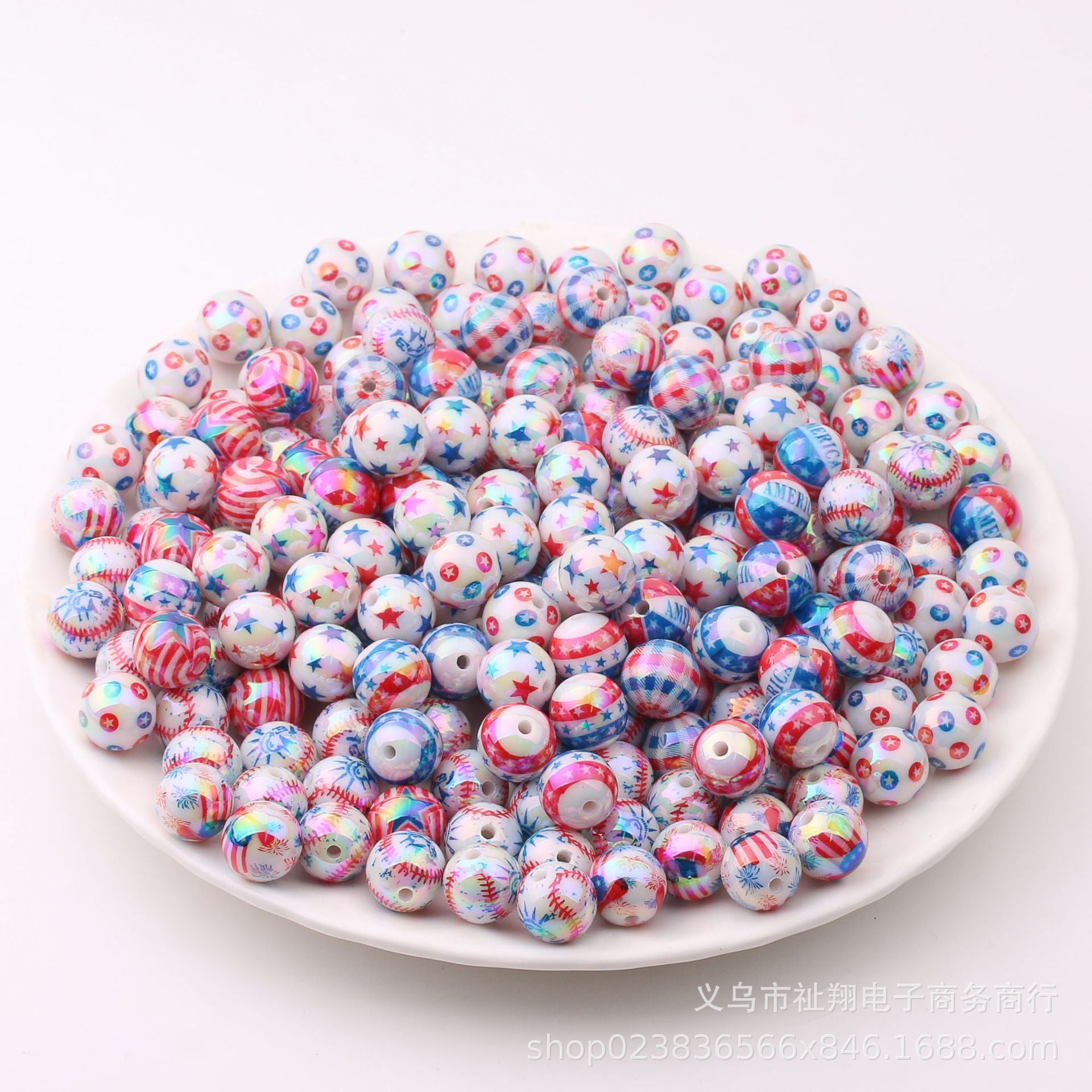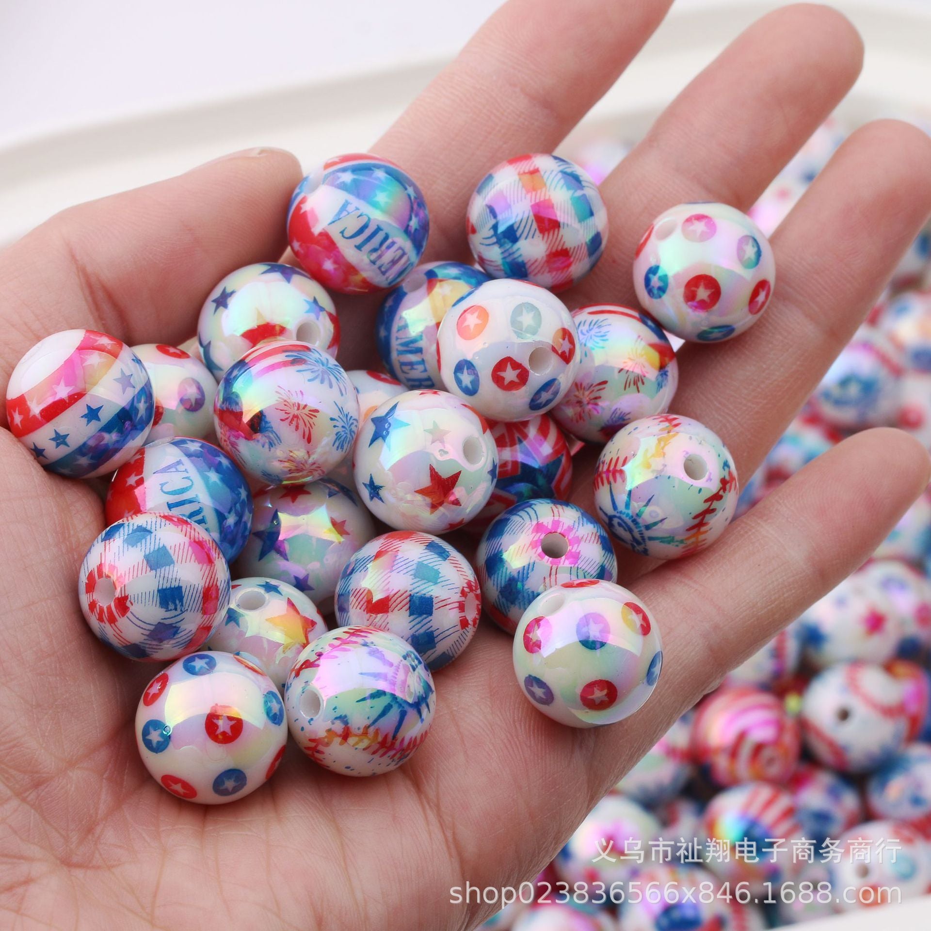 Wholesale 50pcs Acrylic High Transparent Flag Print DIY Beads