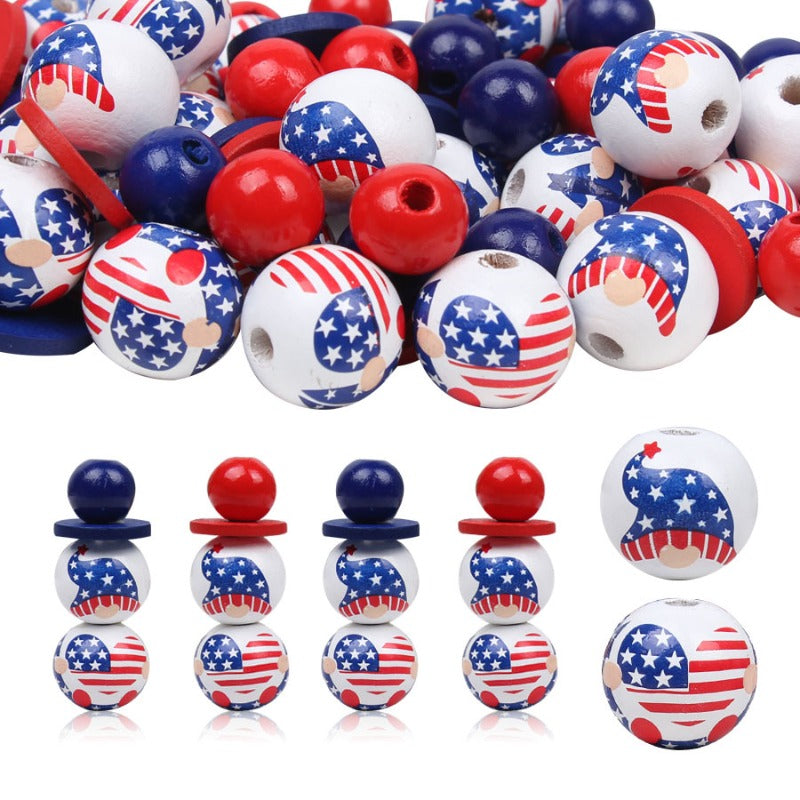 Wholesale 20pcs Wooden Gnome Bead for Independence Day
