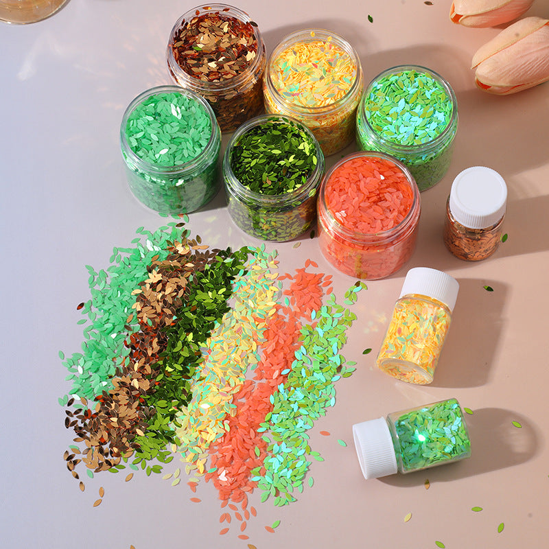 Wholesale Diy Material Green Leaves Eyes Leaves Flow Hemp Leaves Sequins Drip Glue Handmade Quicksand Decoration