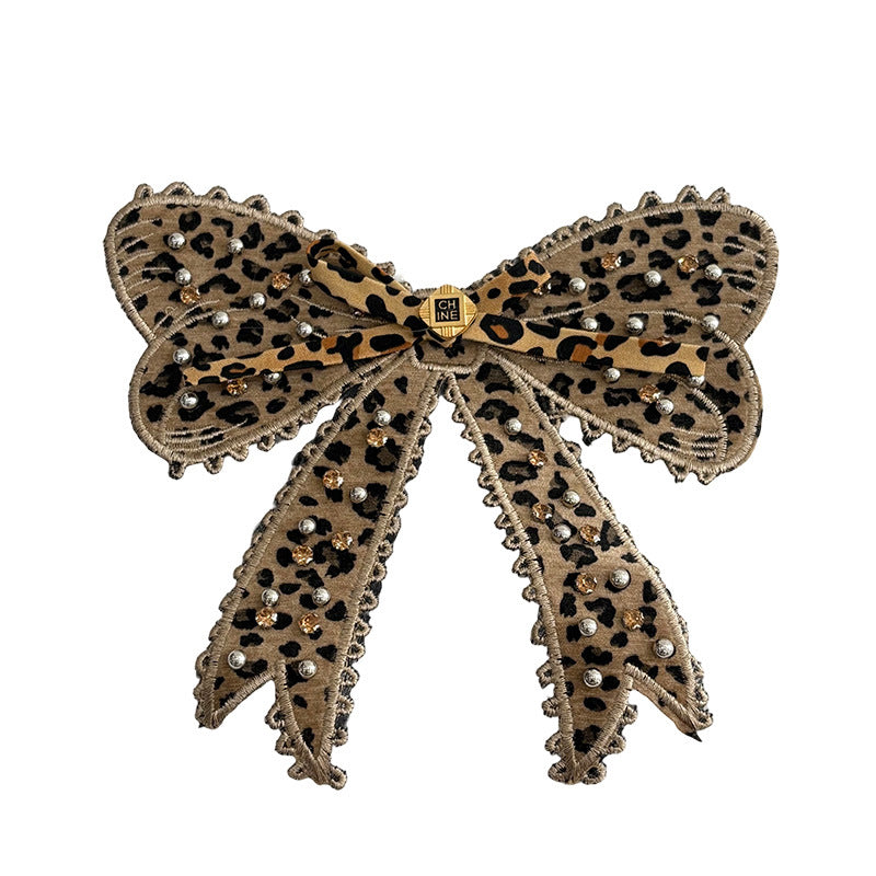 Wholesale Leopard print bow hot stamping embroidery DIY Patches