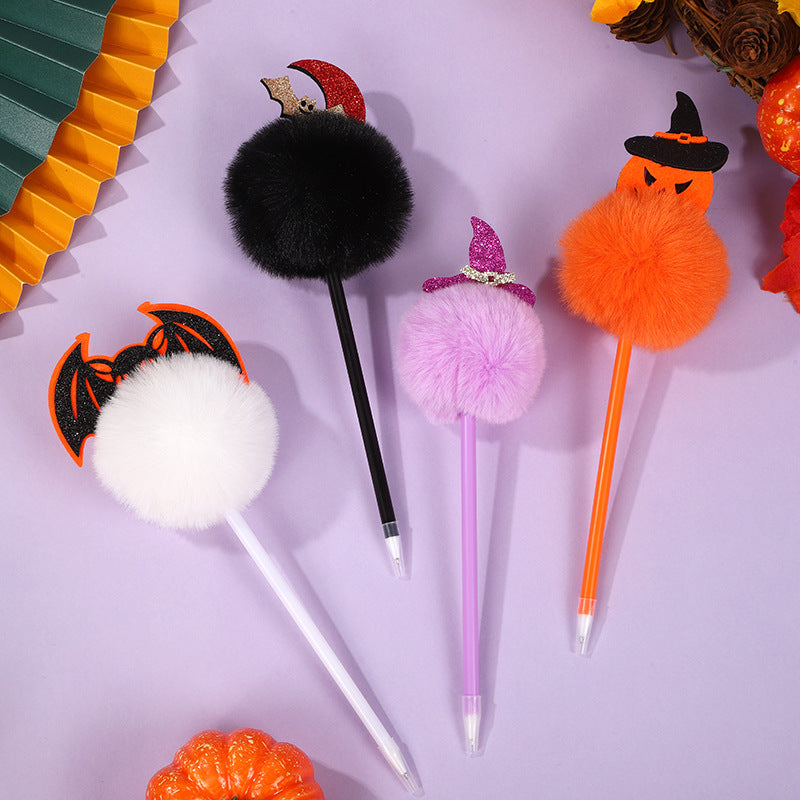 Wholesale Halloween Bat Pumpkin Head Hair Ball Ballpoint Pen