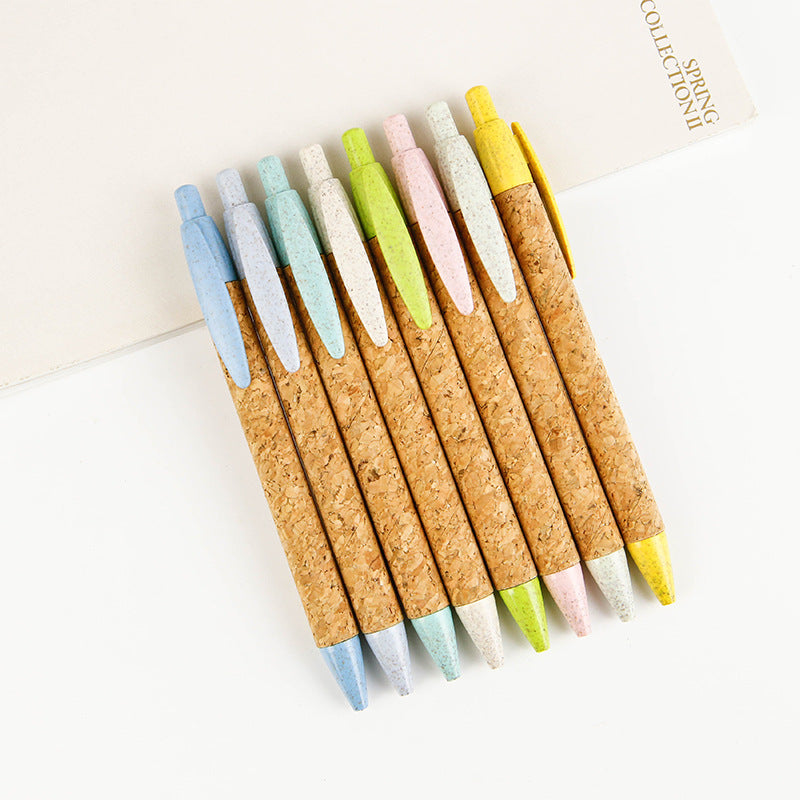 Wholesale of New Environmentally Friendly and Biodegradable Wheat Straw Straw Pen Pattern Paper Tube Cork Ballpoint Pen